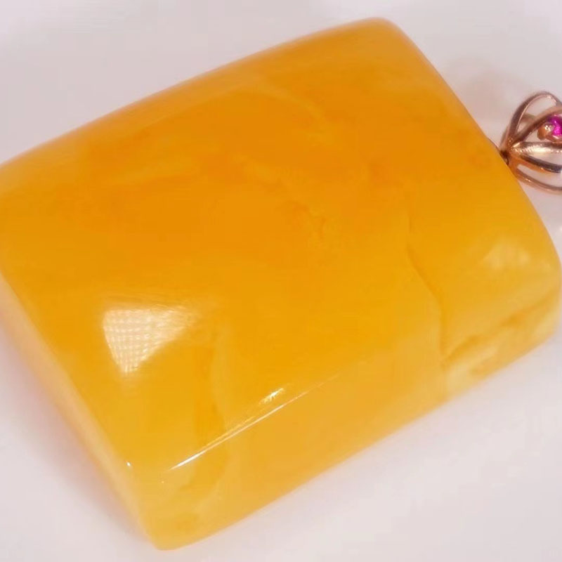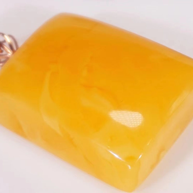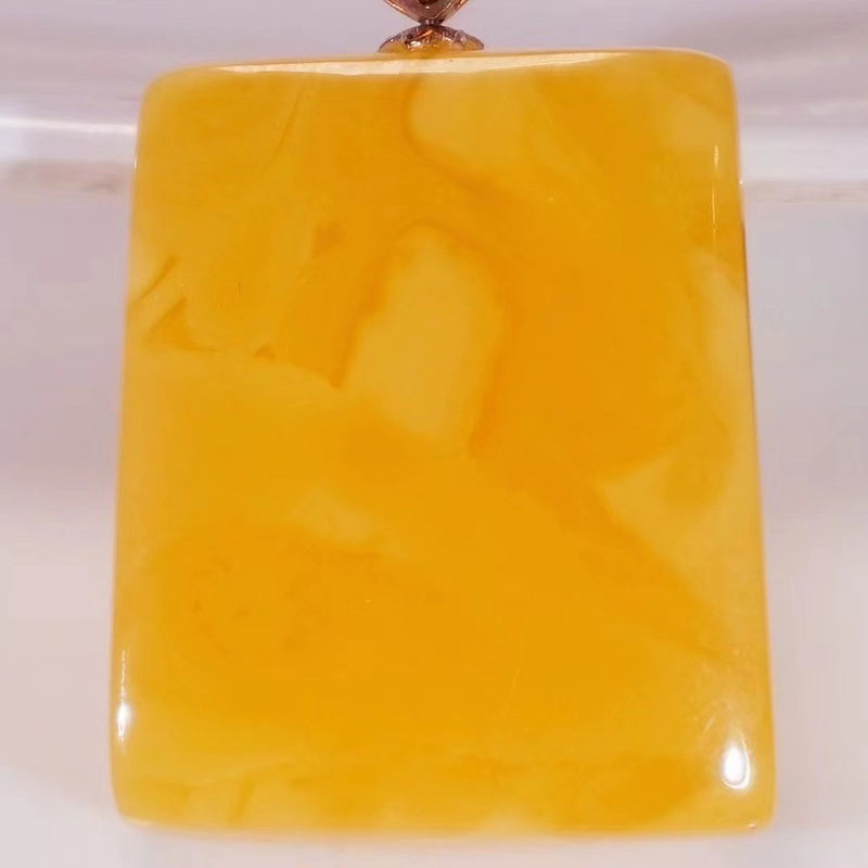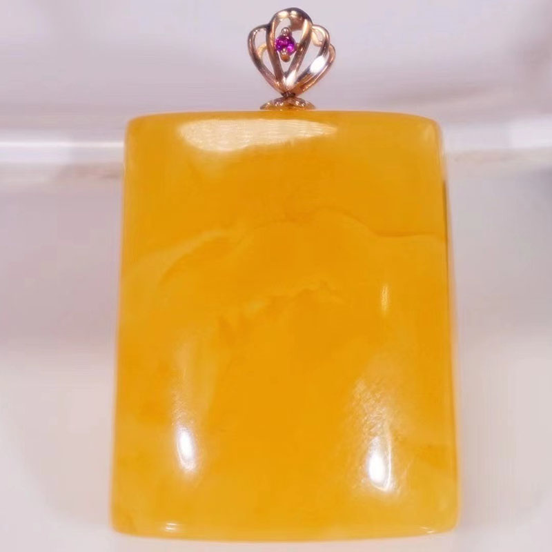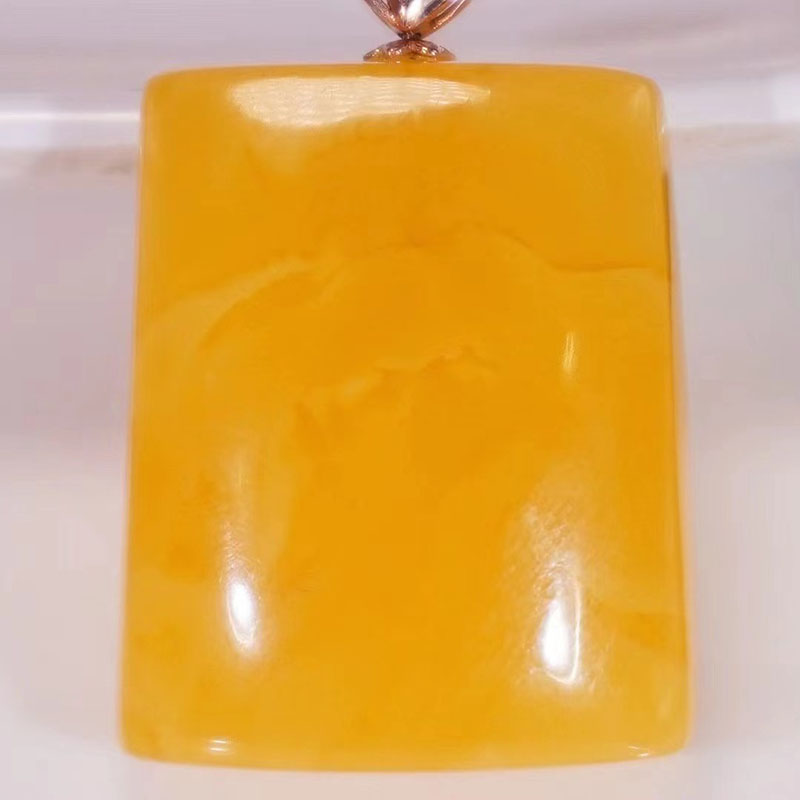 • 18K鸡油黄蜜蜡无事牌吊坠