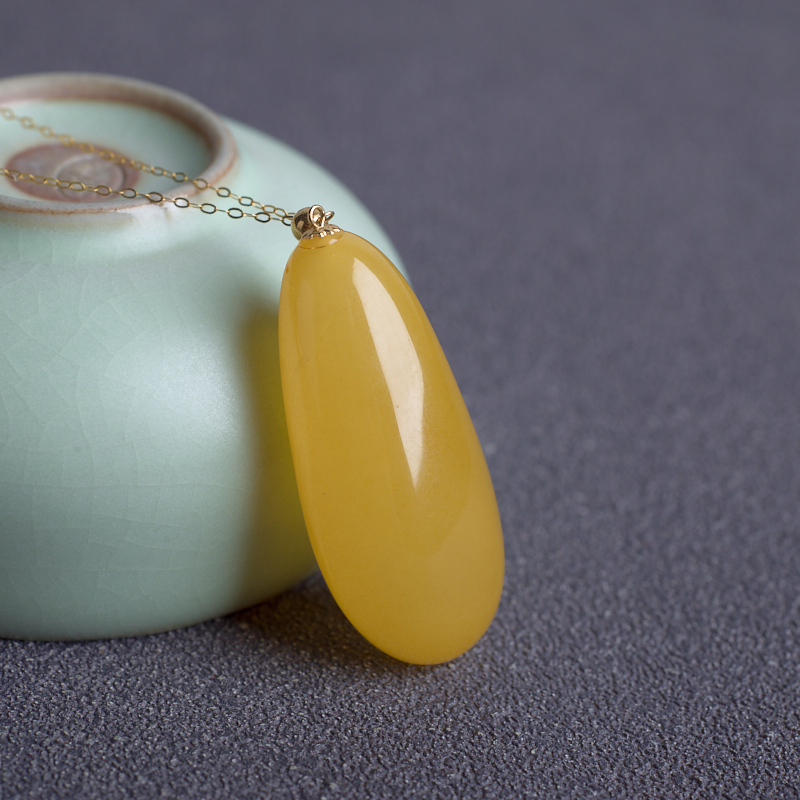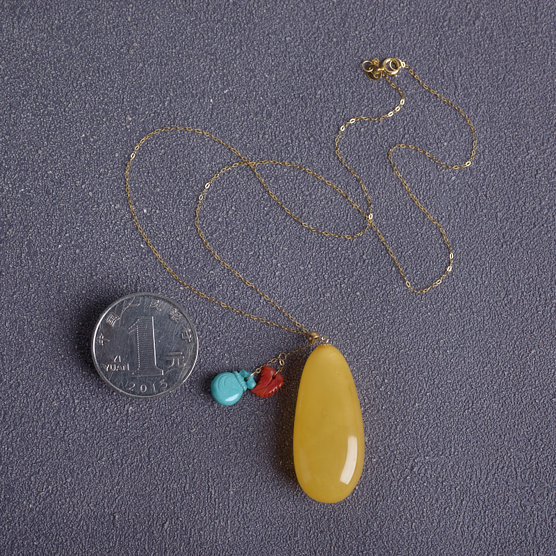 • [名  称] 18K鸡油黄蜜蜡水滴项链