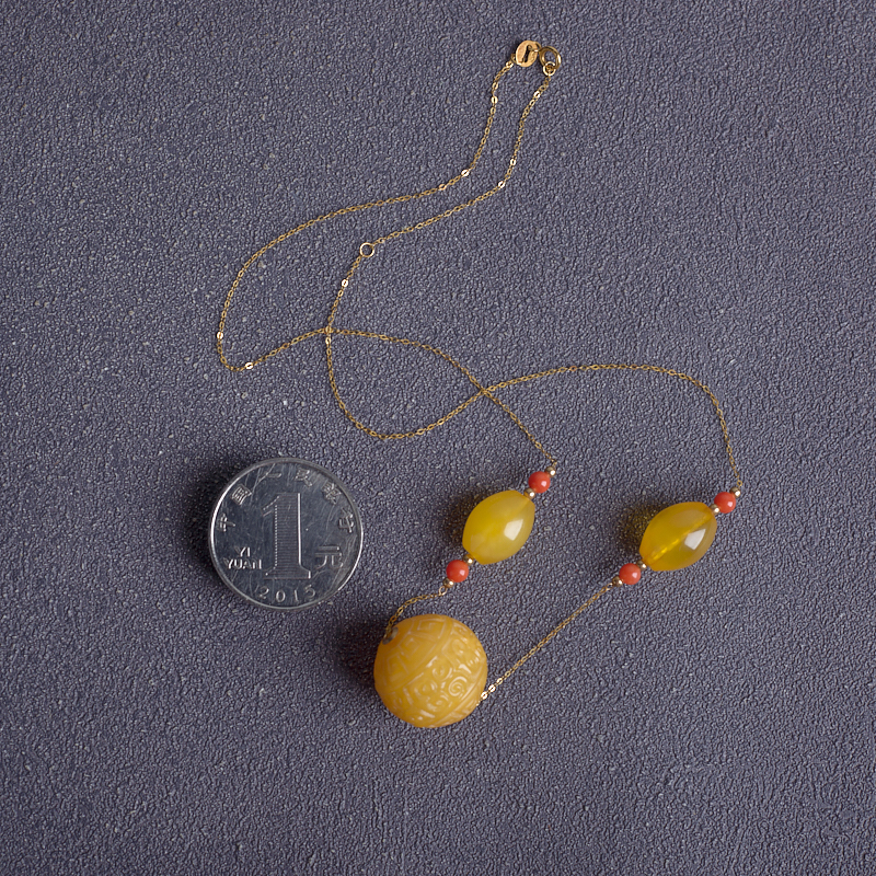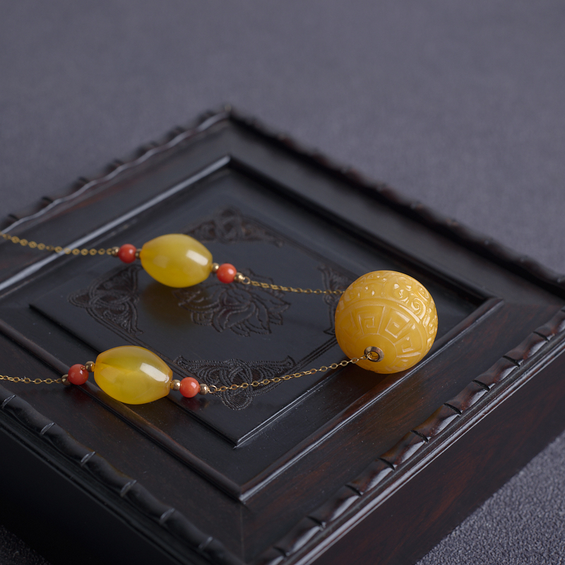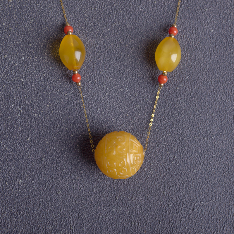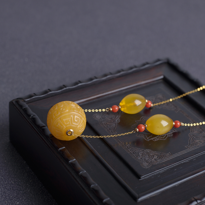 • [名  称] 18K鸡油黄蜜蜡回纹珠项链