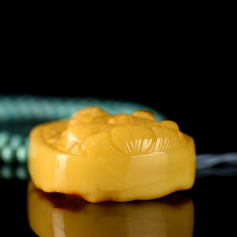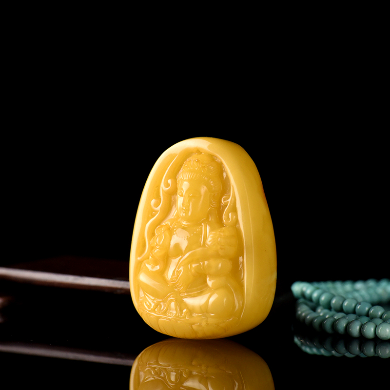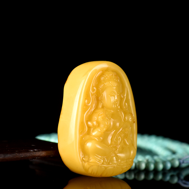 • [名  称] 带皮鸡油黄蜜蜡观音吊坠