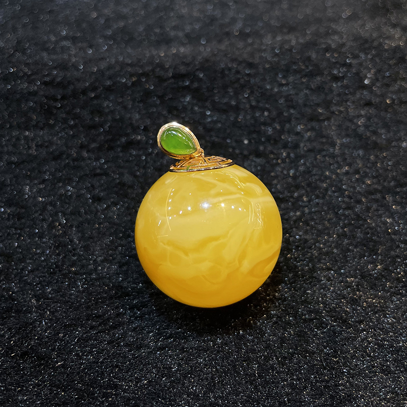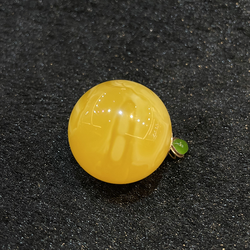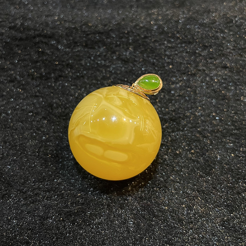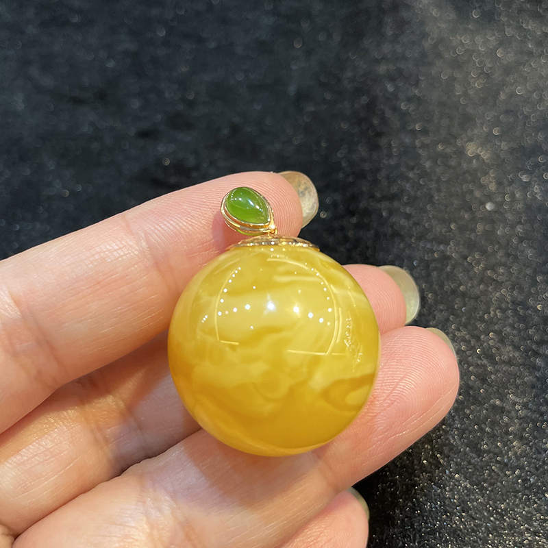 • 18k鸡油黄蜜蜡圆珠吊坠