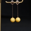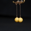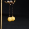 • 18K鸡油黄蜜蜡圆珠耳坠
