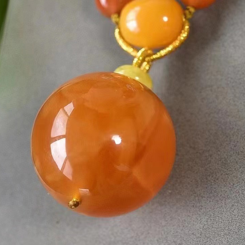 • [名  称] 26mm鸡油红蜜蜡圆珠吊坠