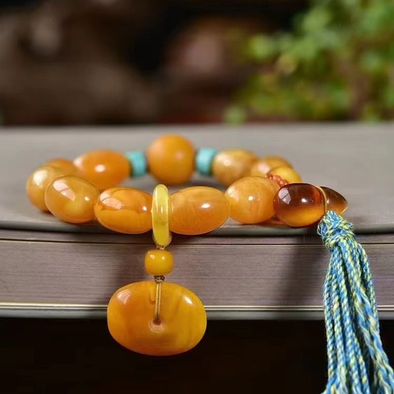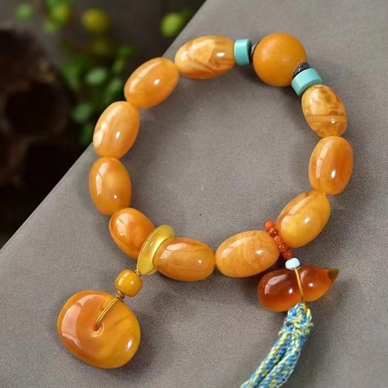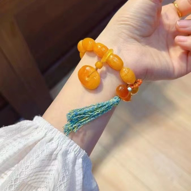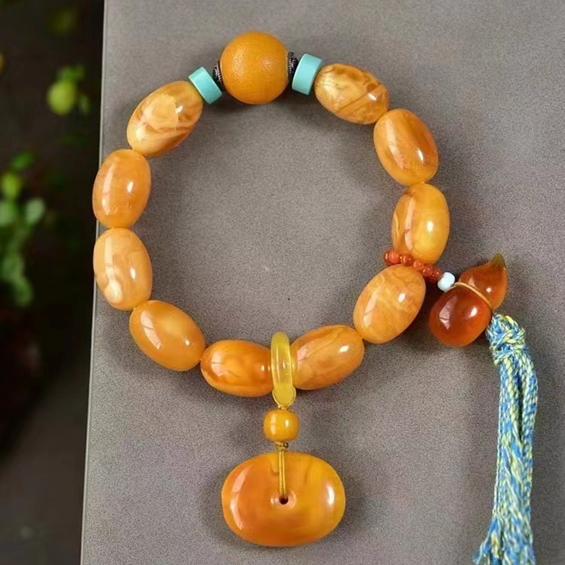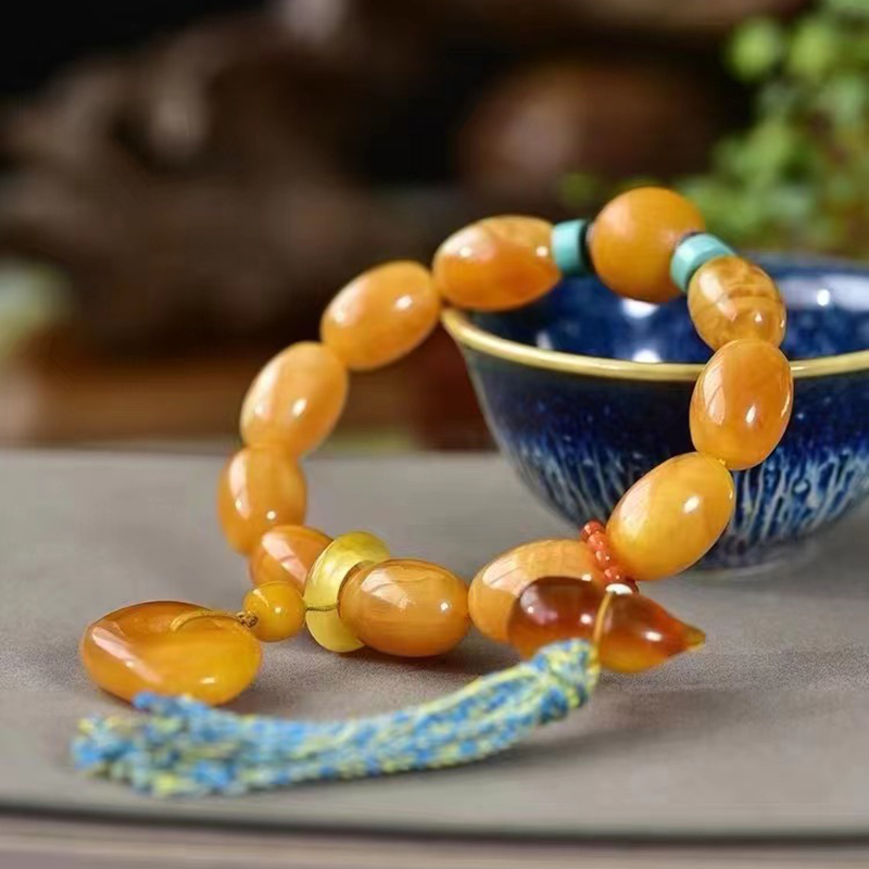 • [名  称] 鸡油黄蜜蜡枣珠单圈手串