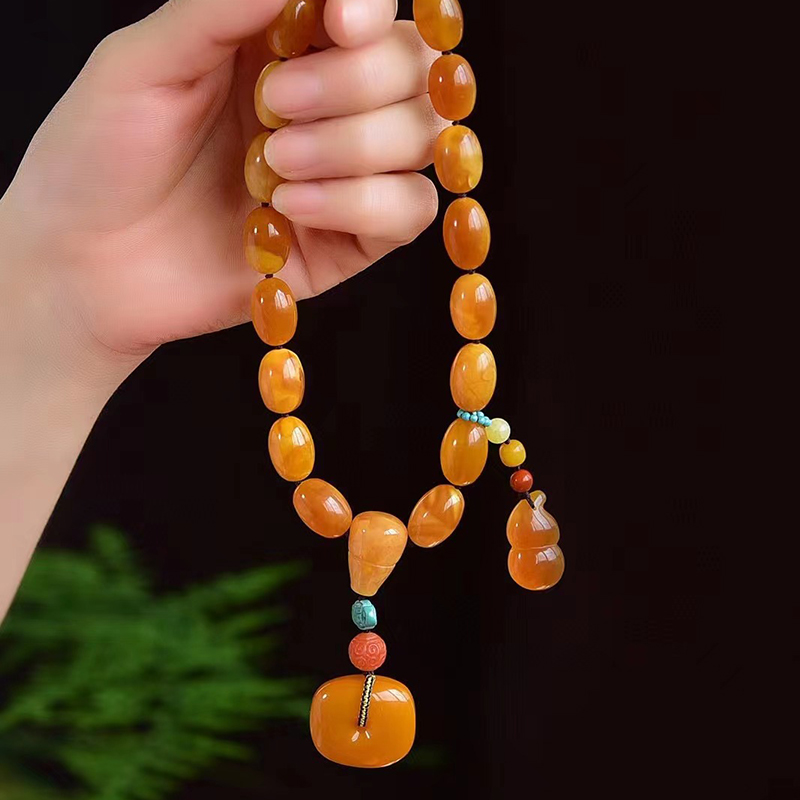 • 鸡油红蜜蜡枣珠十八子手持