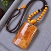 • 鸡油红蜜蜡无事牌吊坠
