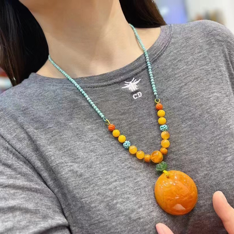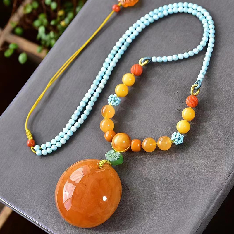 • 鸡油红蜜蜡公主扣吊坠