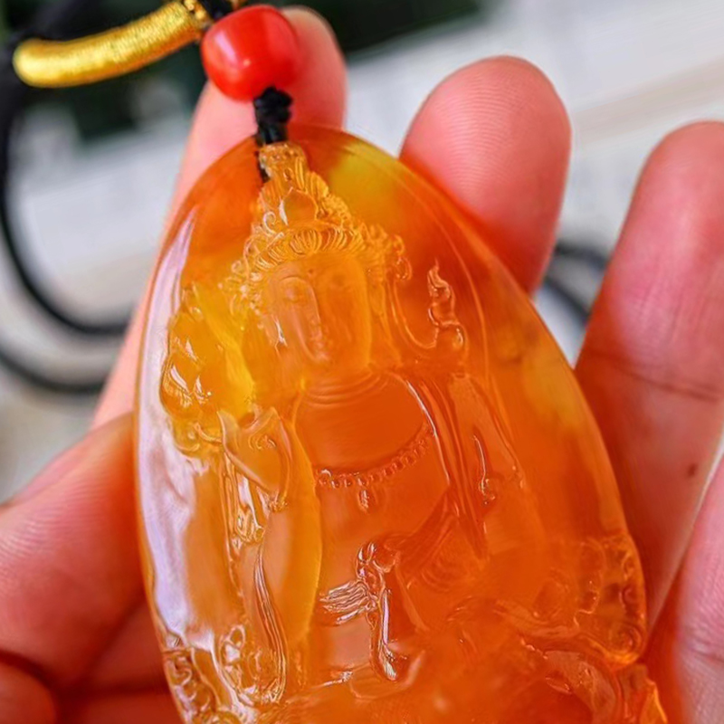 • [名  称] 鸡油红蜜蜡观音吊坠