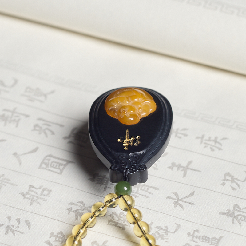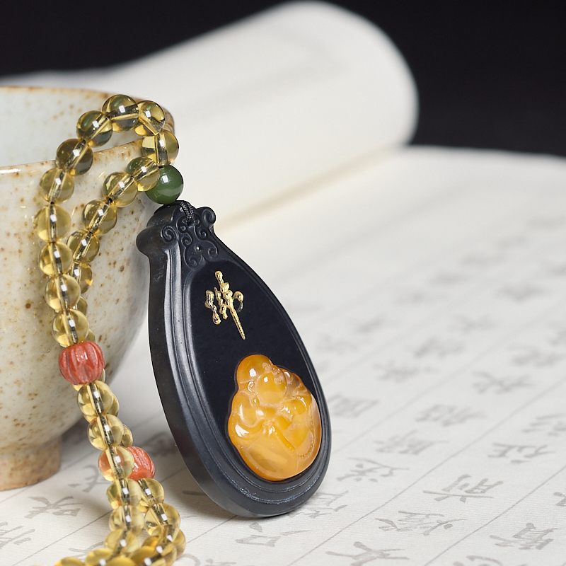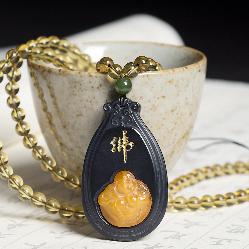 • 鸡油黄蜜蜡弥勒佛吊坠