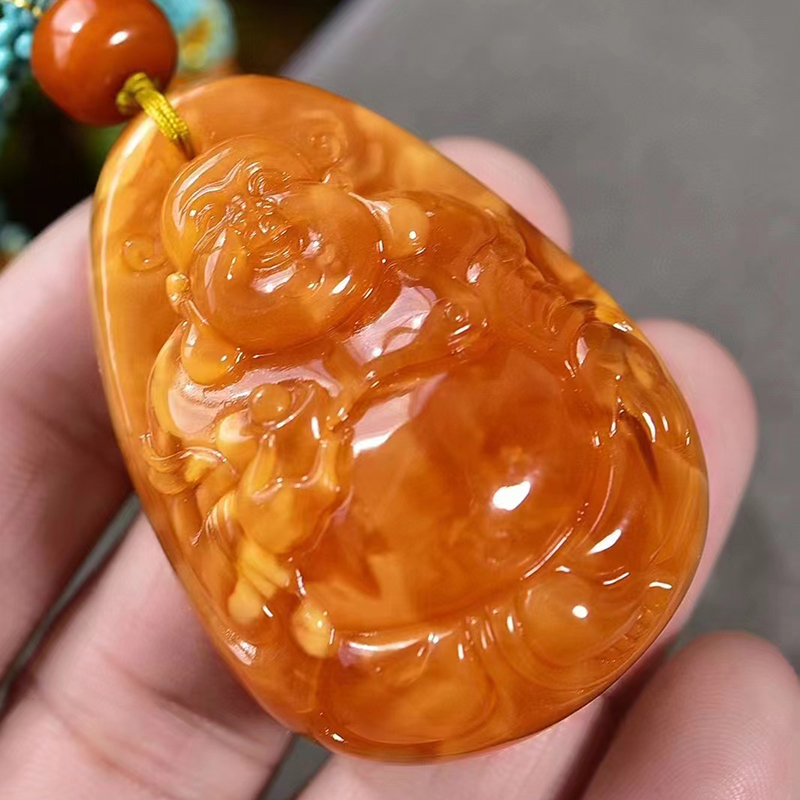 • [名  称] 鸡油红蜜蜡弥勒佛吊坠