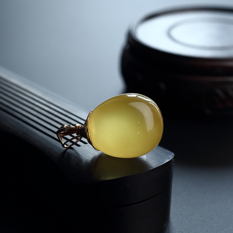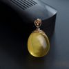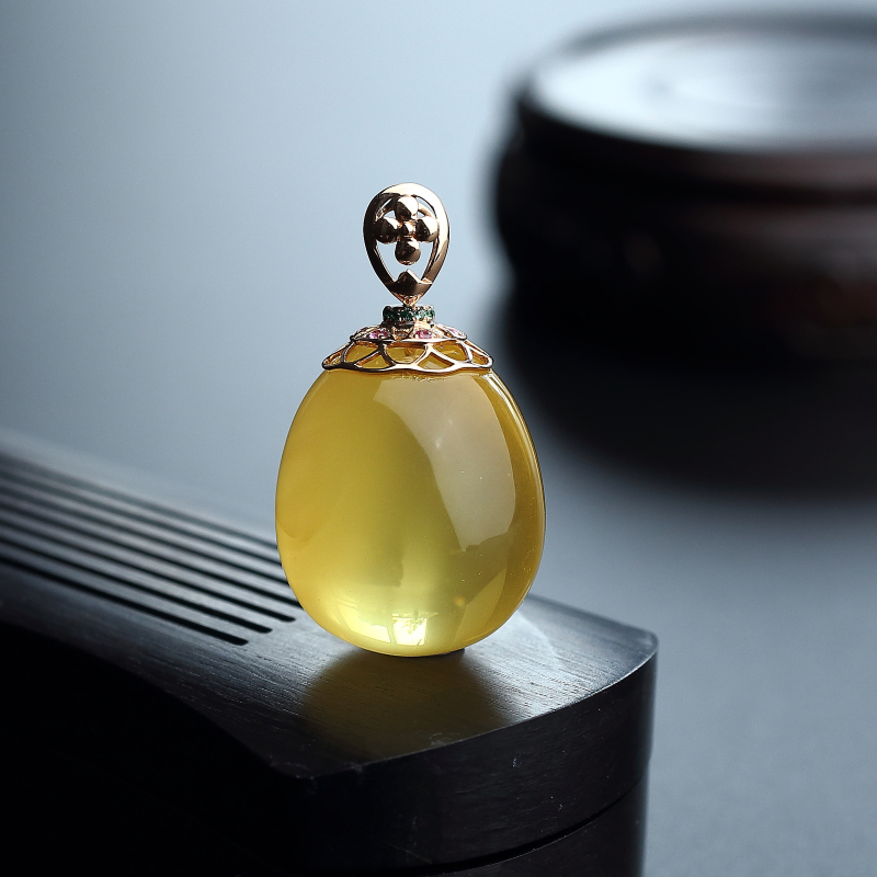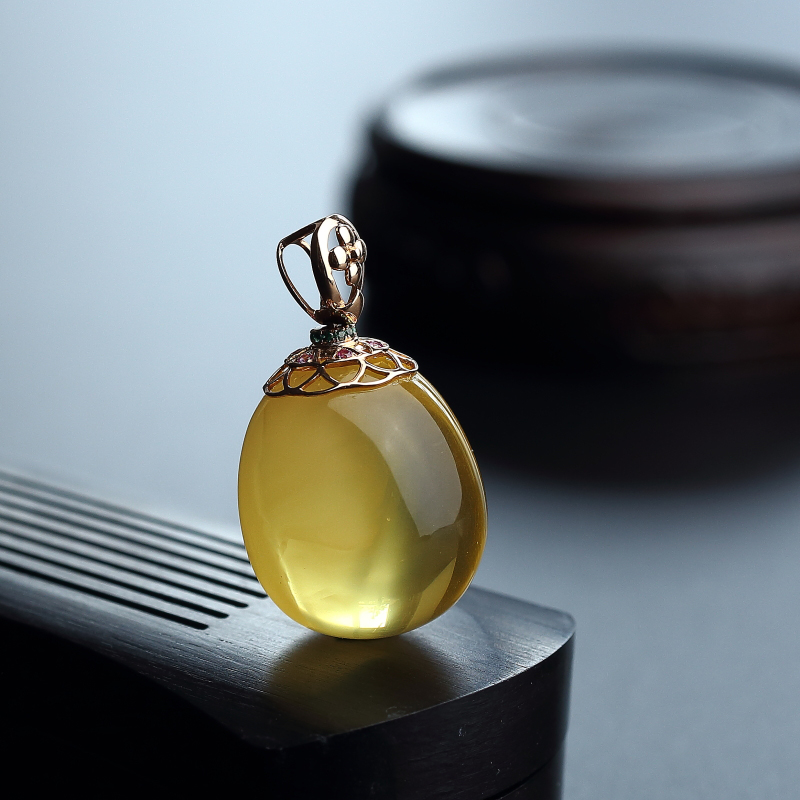 • 18k金镶鸡油黄蜜蜡水滴吊坠