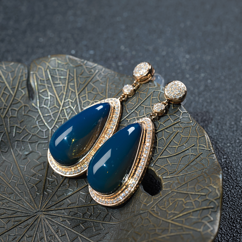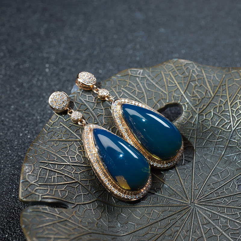 • [名  称] 18K天空蓝多米蓝珀水滴耳坠