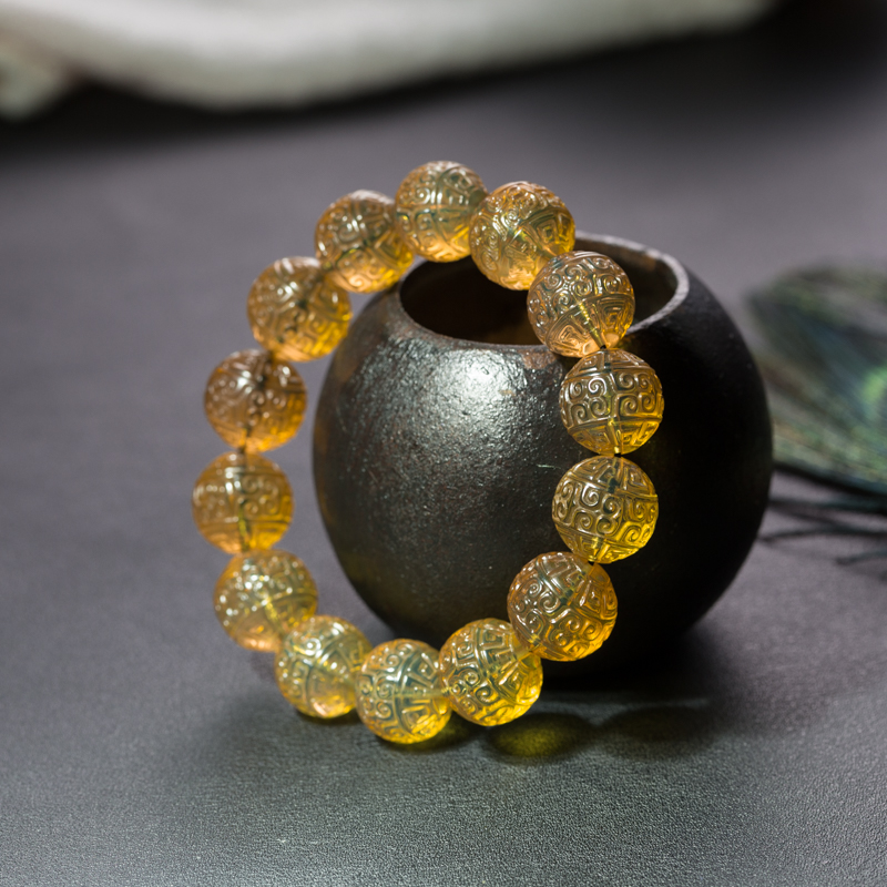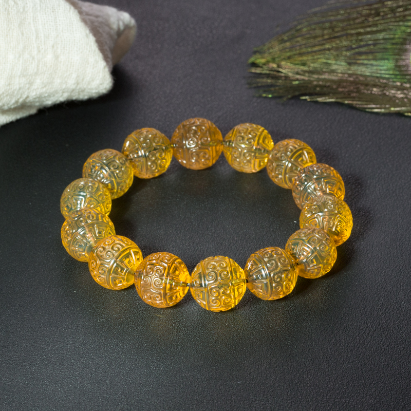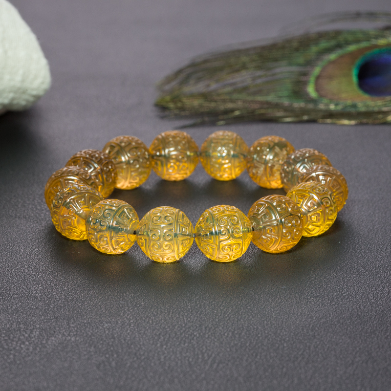 • 15mm墨西哥蓝珀回纹珠单圈手串