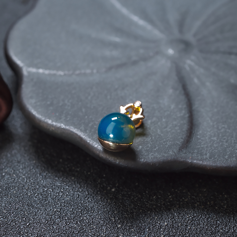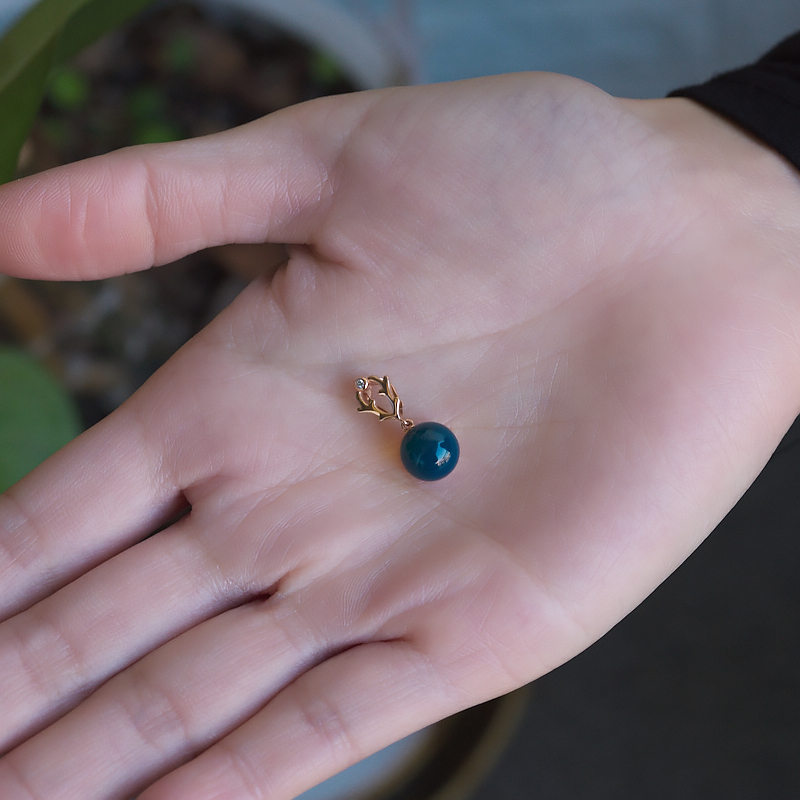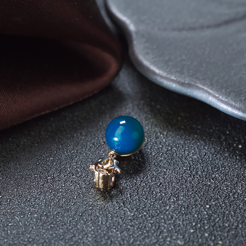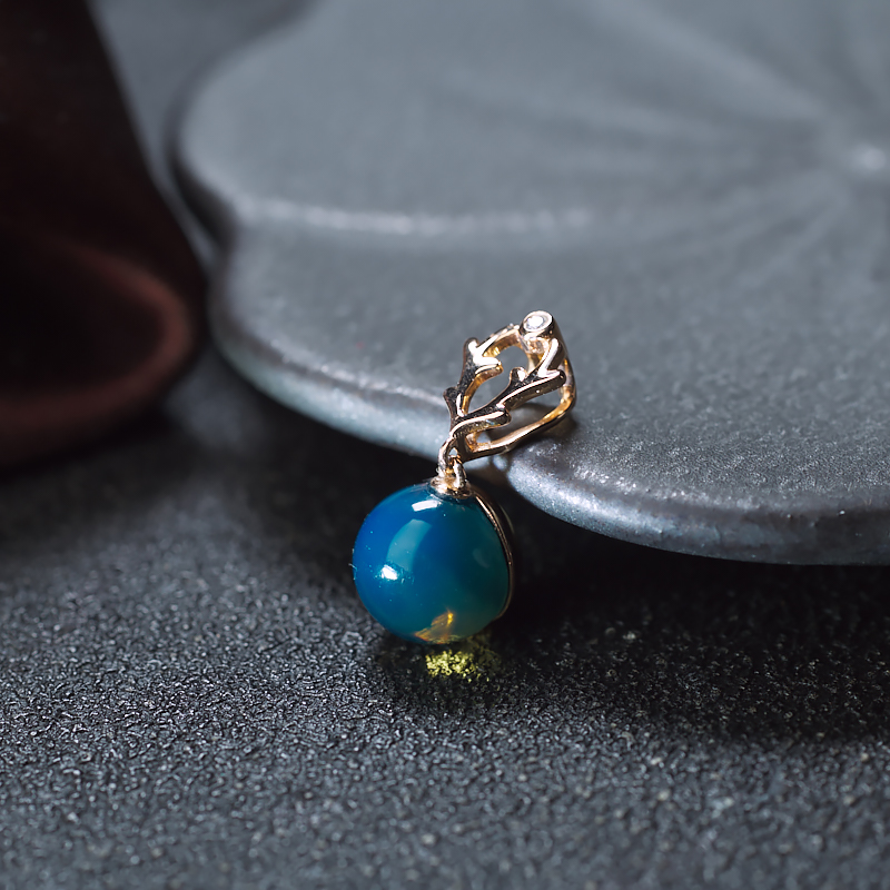 • 18K天空蓝多米蓝珀圆珠吊坠
