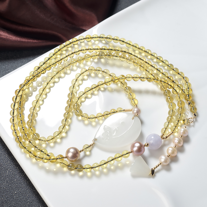配饰:和田玉、翡翠、珍珠、18K金饰、18K金扣和调节链