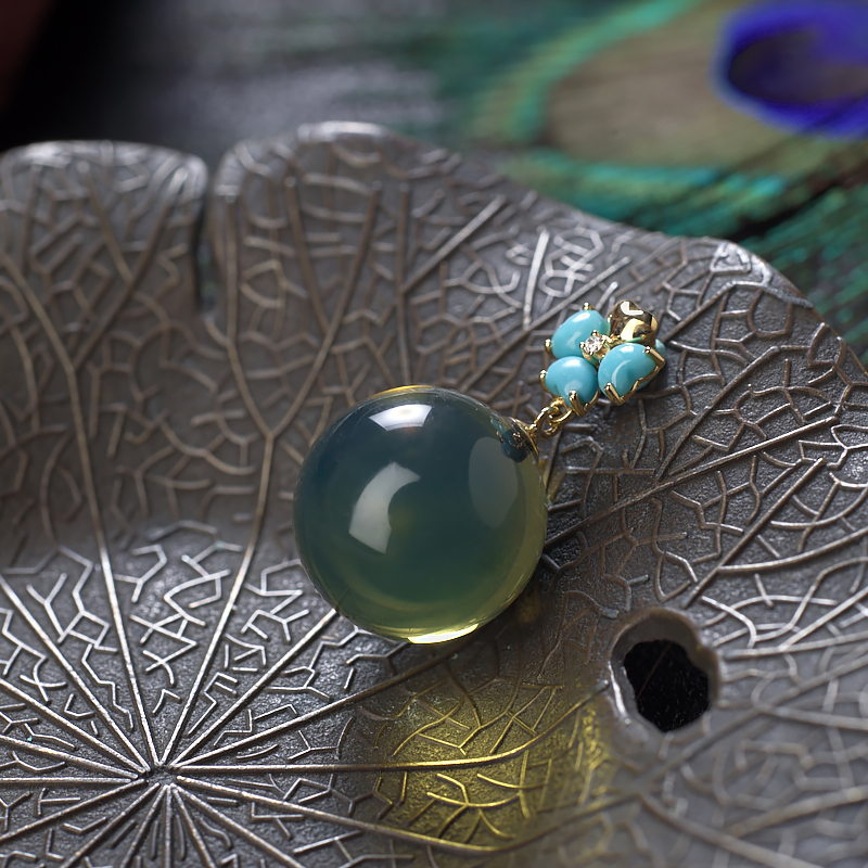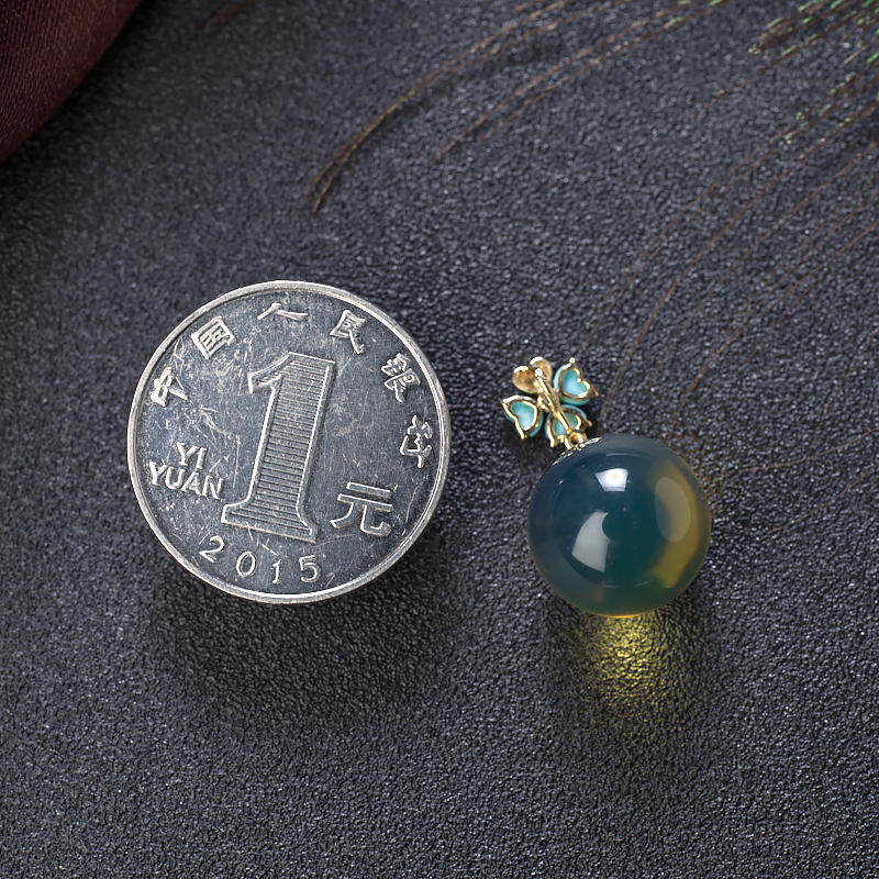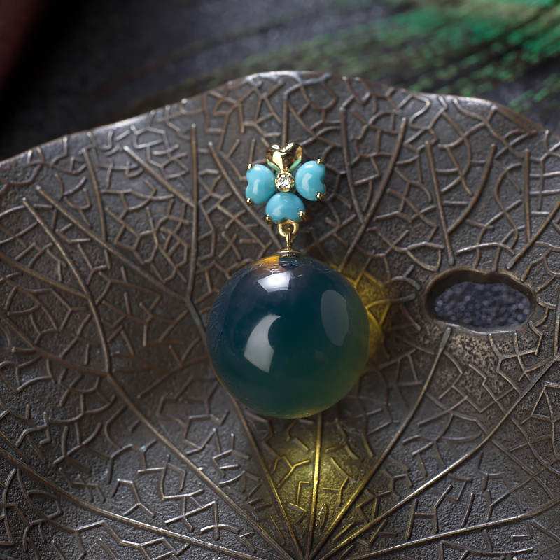 • 18K墨西哥蓝珀圆珠吊坠