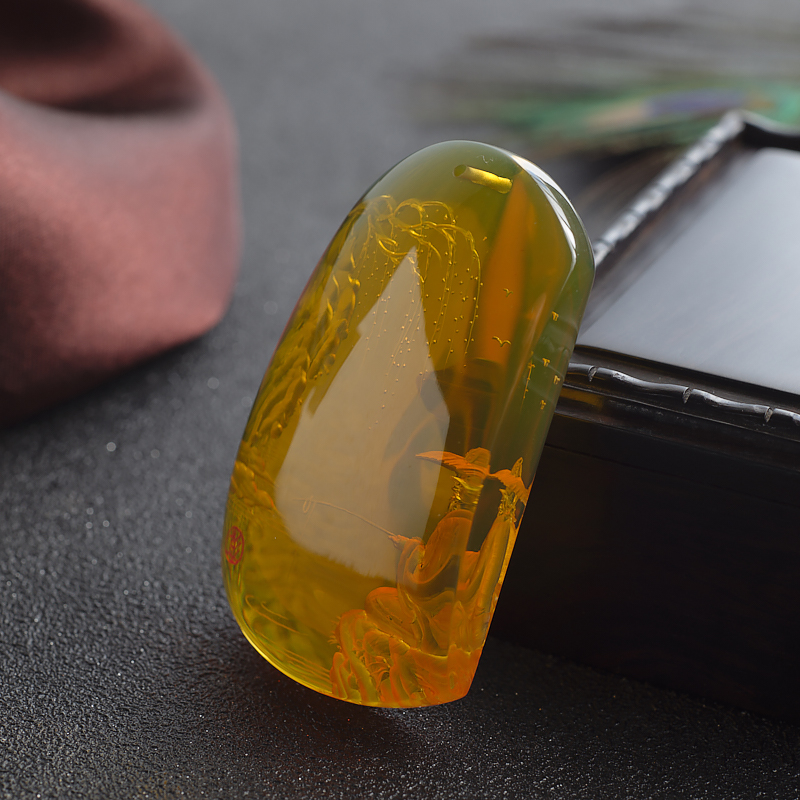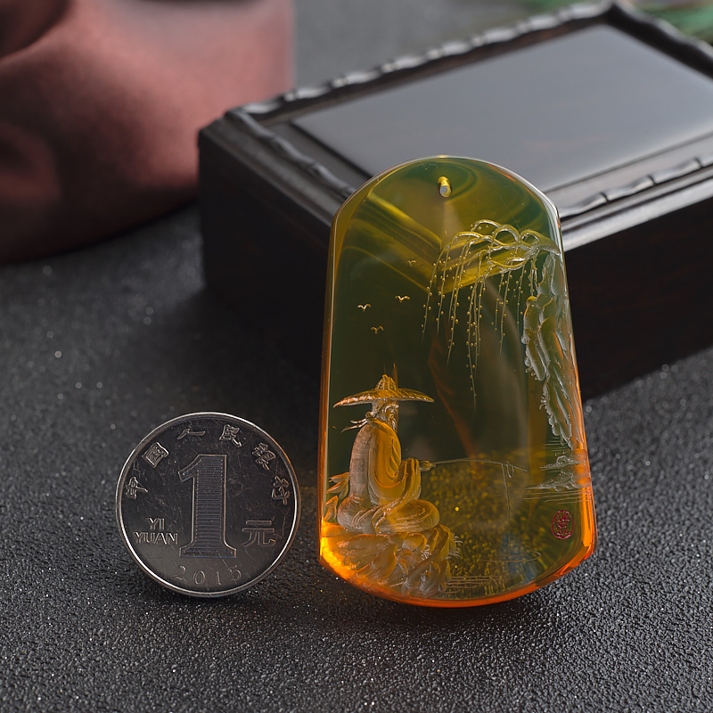 • 墨西哥蓝珀姜太公钓鱼吊坠