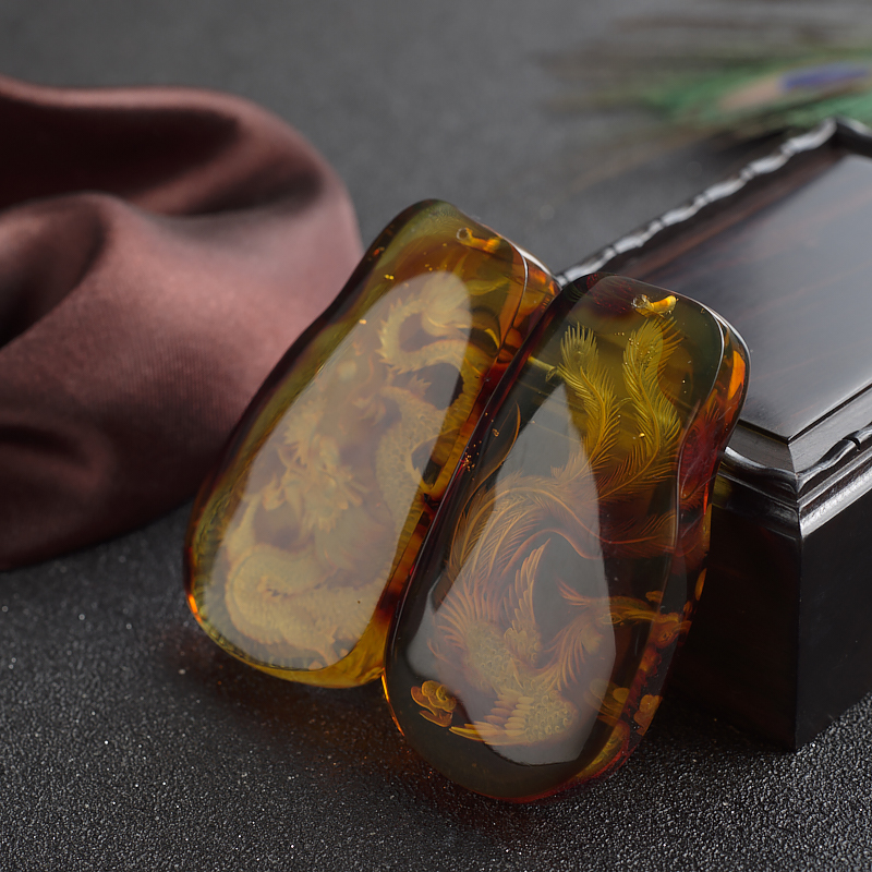 • [名  称] 墨西哥红蓝珀龙凤呈祥吊坠(两件)