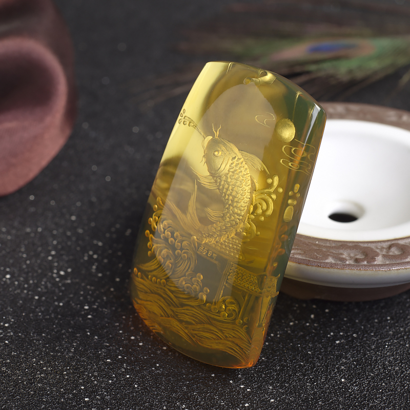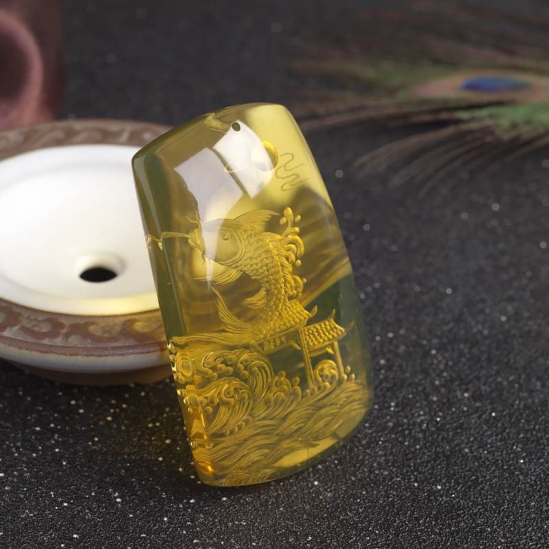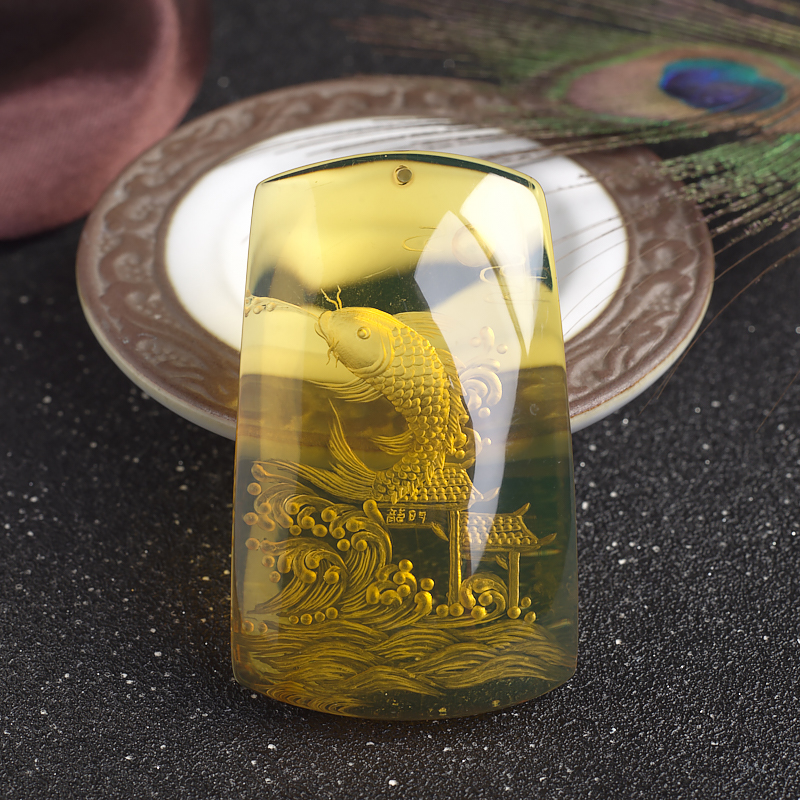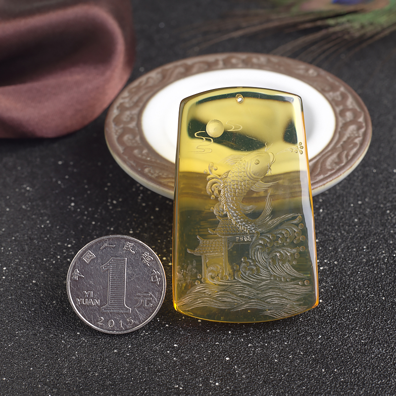 • 墨西哥蓝珀鱼跃龙门吊坠