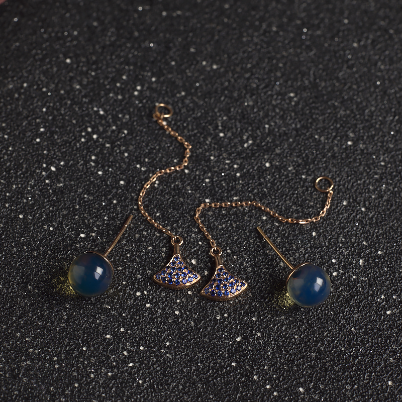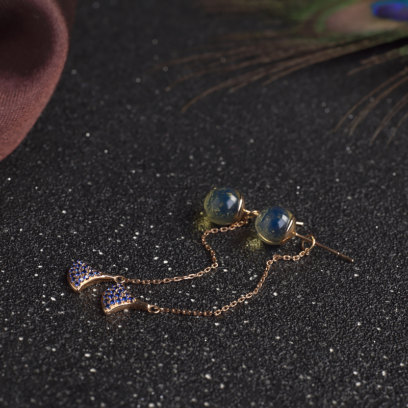 • [名  称] 18K天空蓝多米蓝珀耳钉/耳线两用款