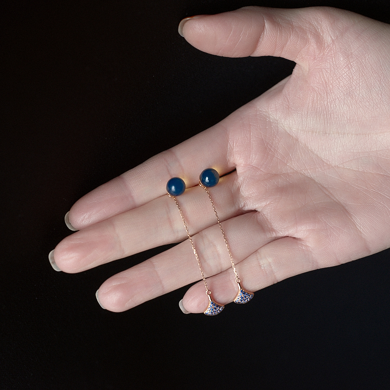 • 18K天空蓝多米蓝珀耳钉/耳线两用款
