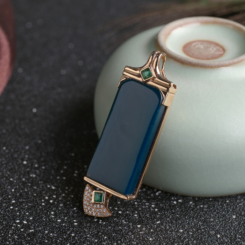 • 18K天空蓝多米蓝珀无事牌吊坠