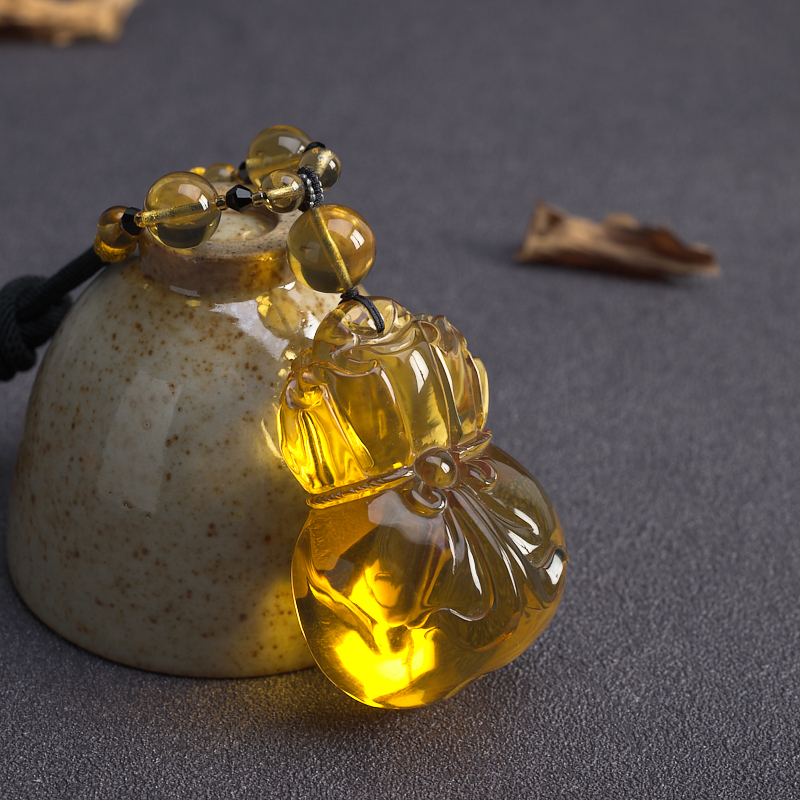 • 净水蓝珀钱袋吊坠