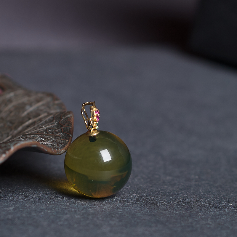 • [名  称] 18K墨西哥蓝珀圆珠吊坠