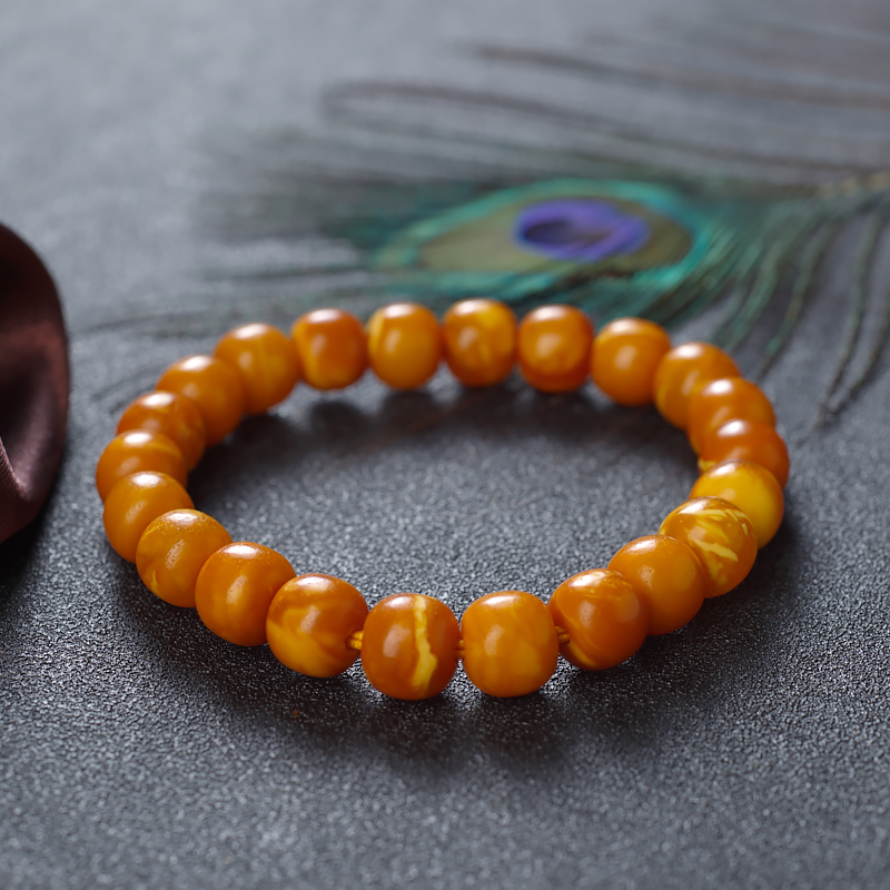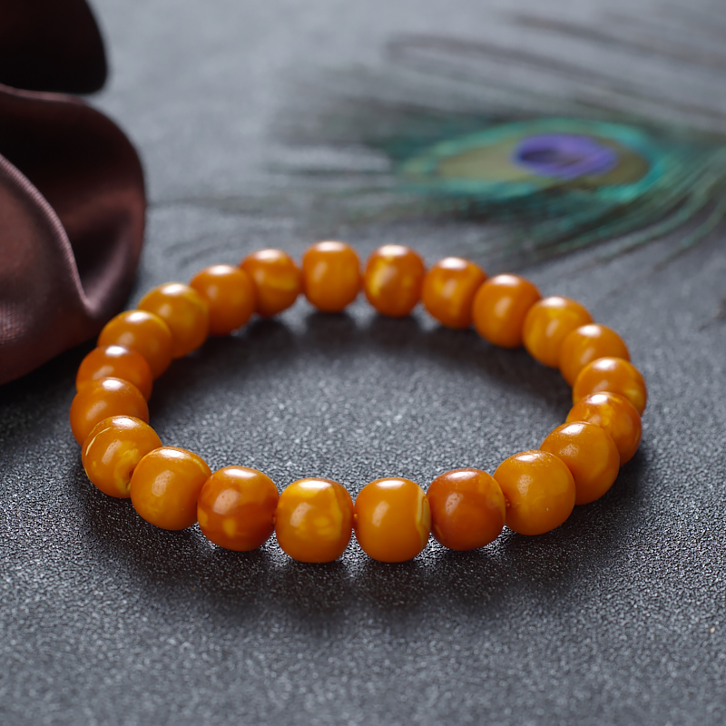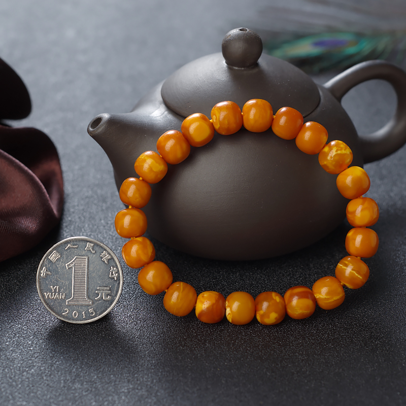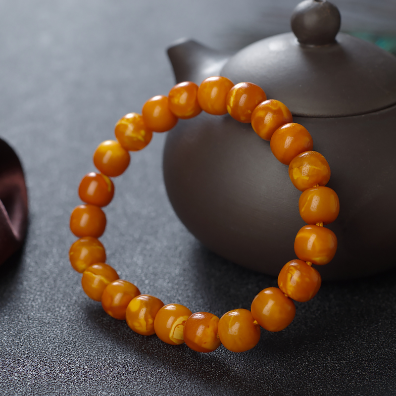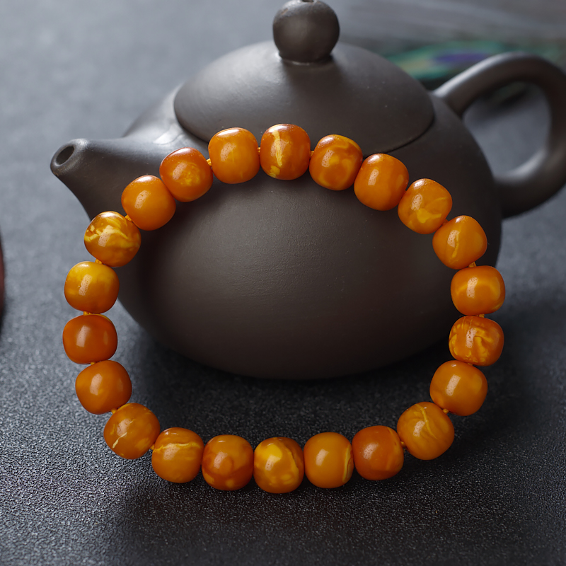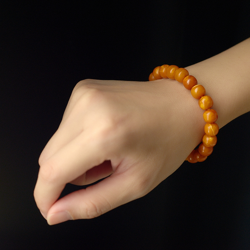 • 老蜜蜡桶珠单圈手串
