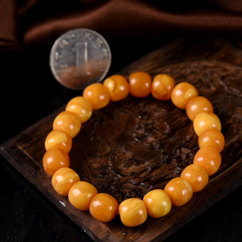 • 老蜜蜡老形珠单圈手串