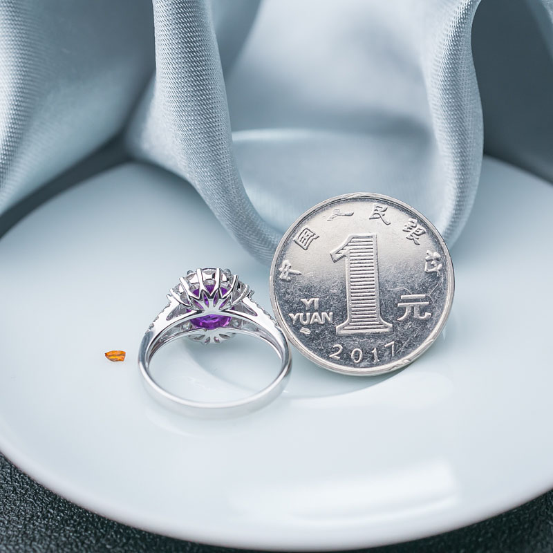 [尺  寸] 主石长8.8mm宽7.4mm厚6.5mm,指圈15#,可改