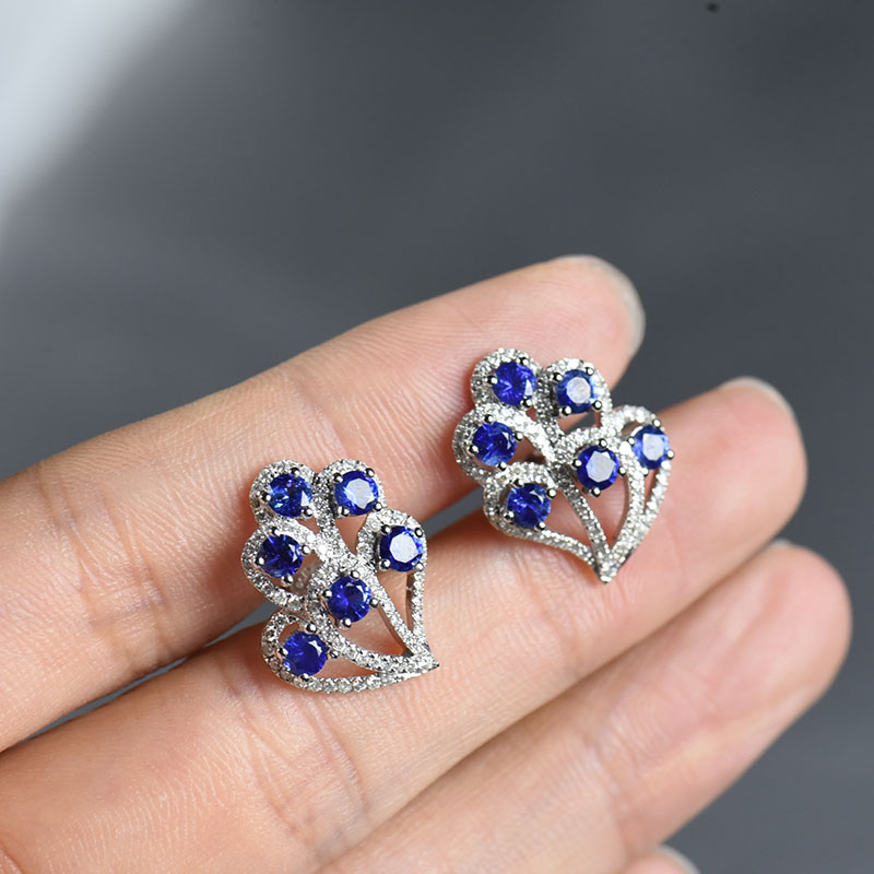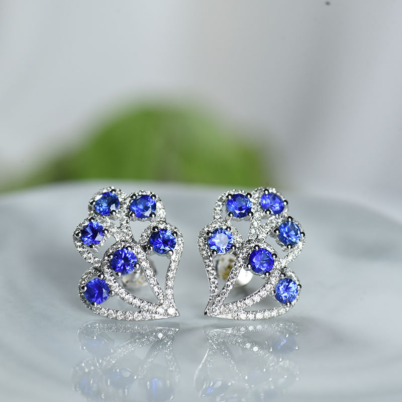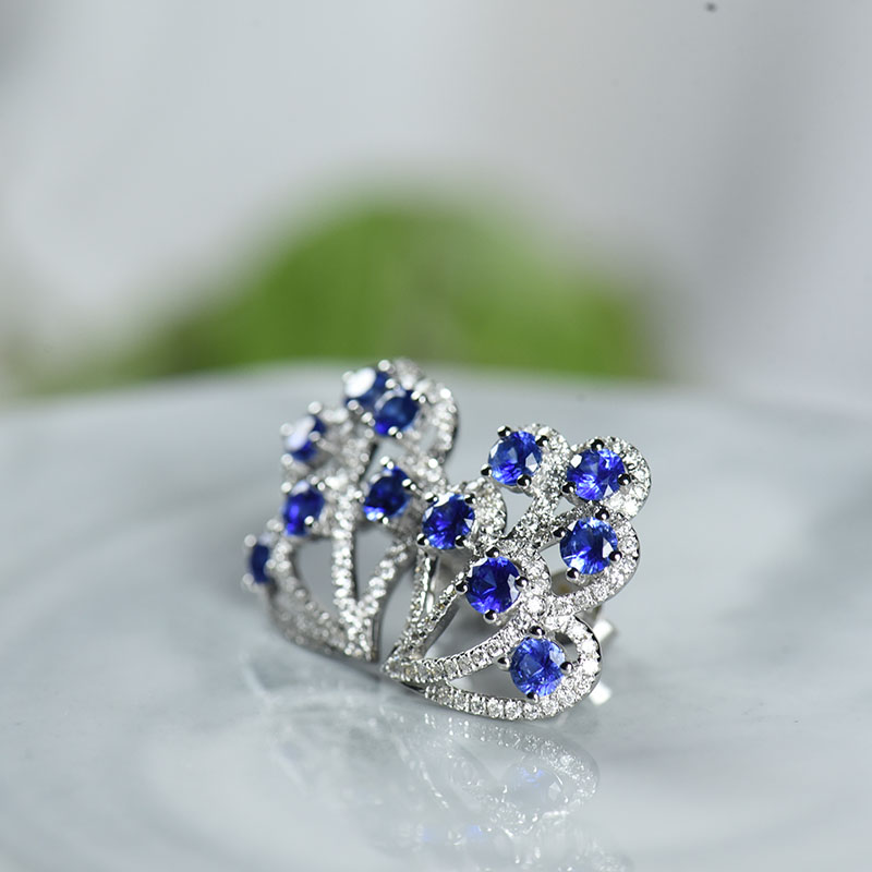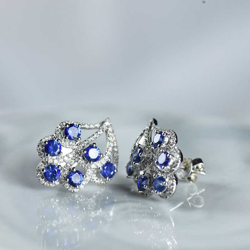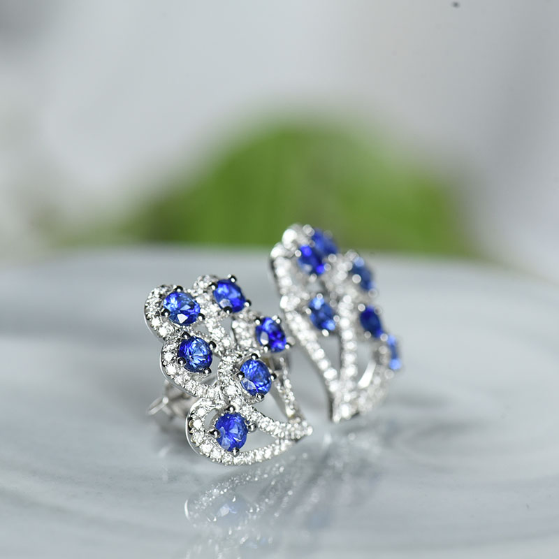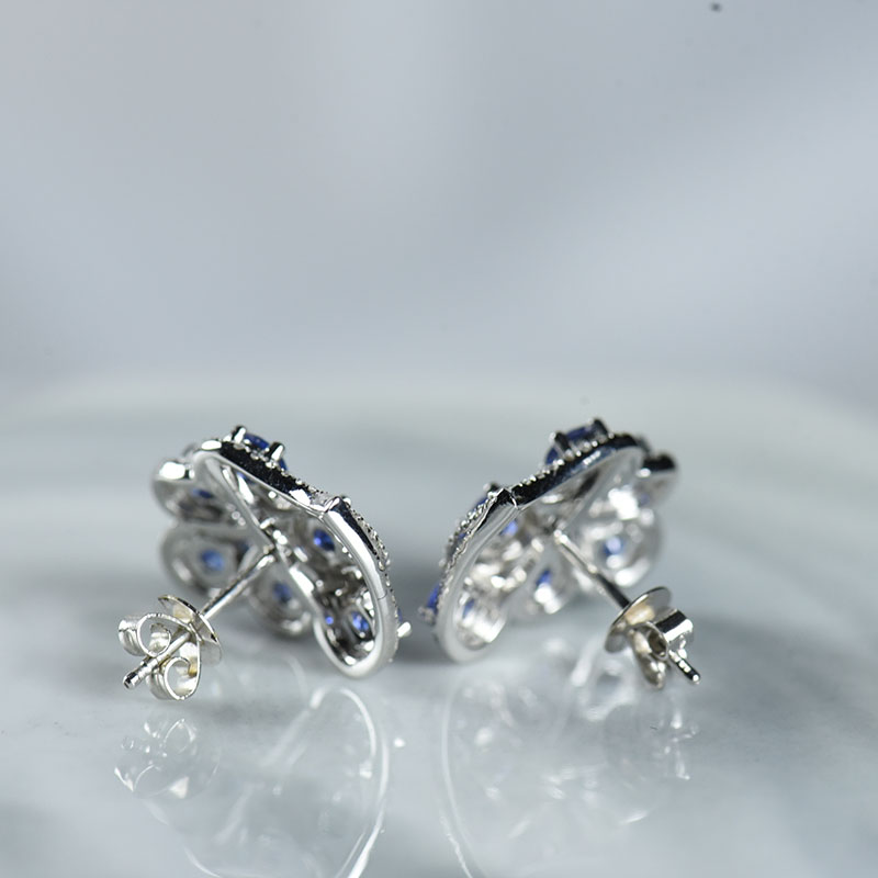 • 18K矢车菊蓝蓝宝石耳钉