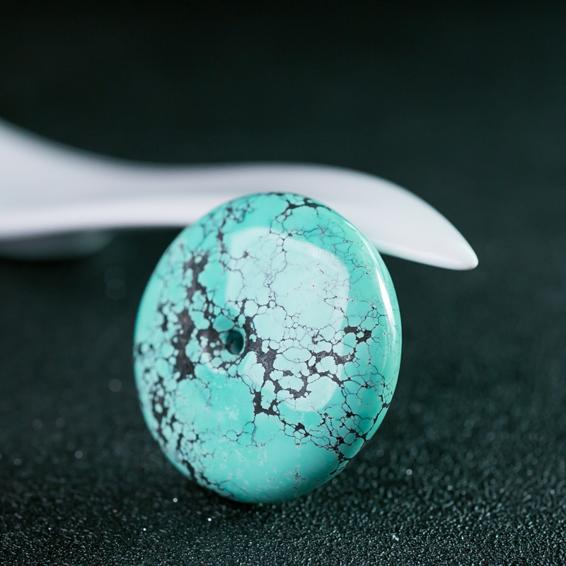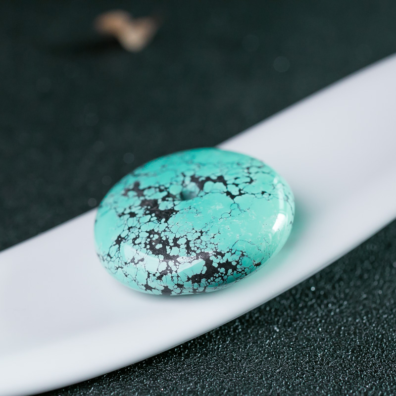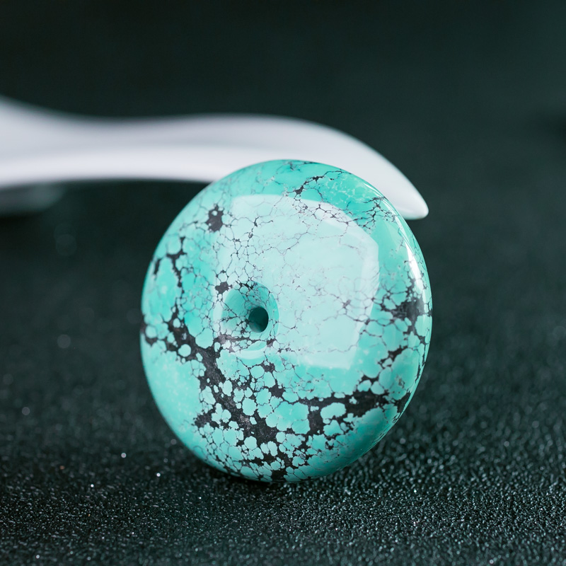 • 中高瓷铁线蓝绿绿松石平安扣吊坠