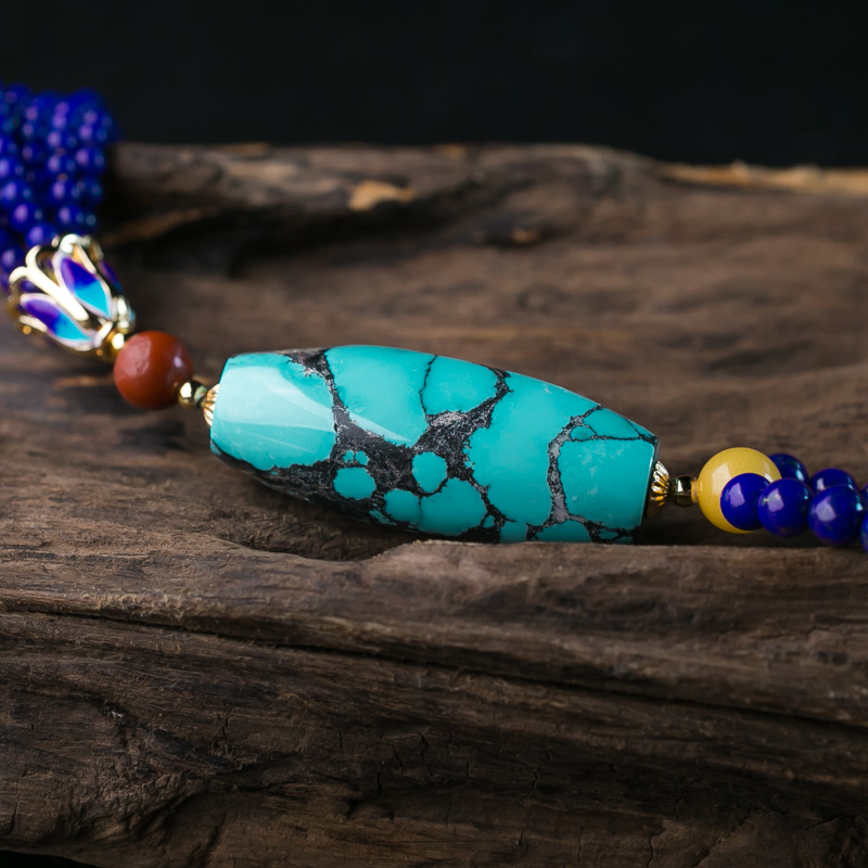 • 高瓷铁线蓝绿绿松石桶珠吊坠