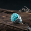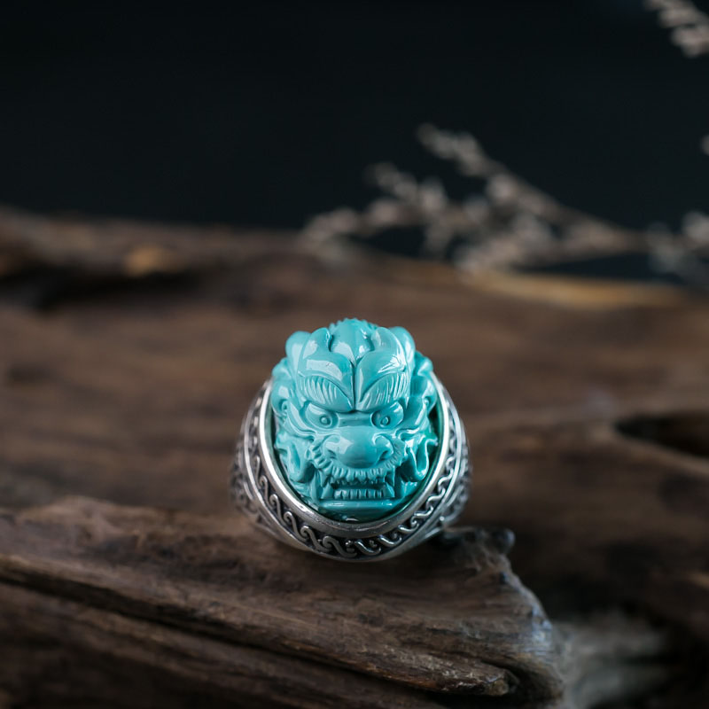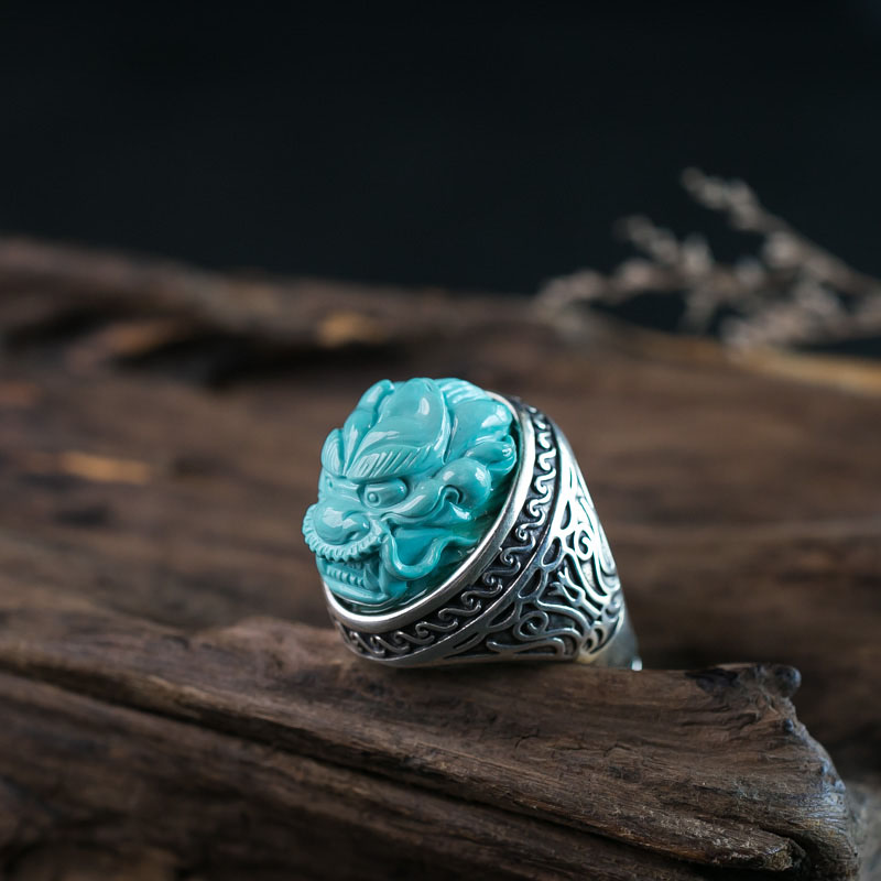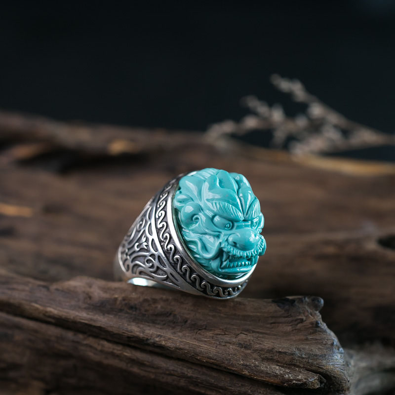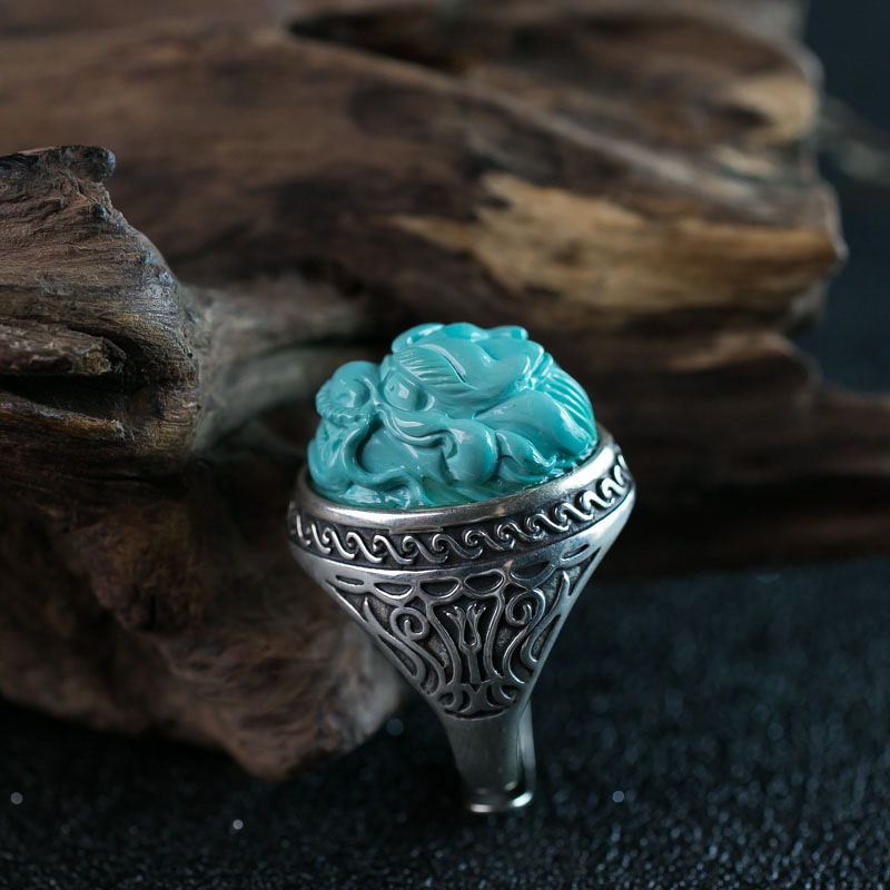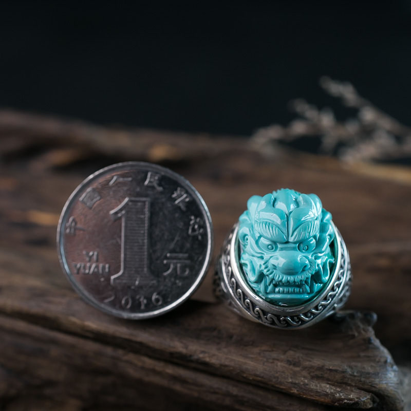 • [名  称] 银镶高瓷蓝绿松石龙头戒指