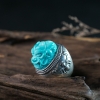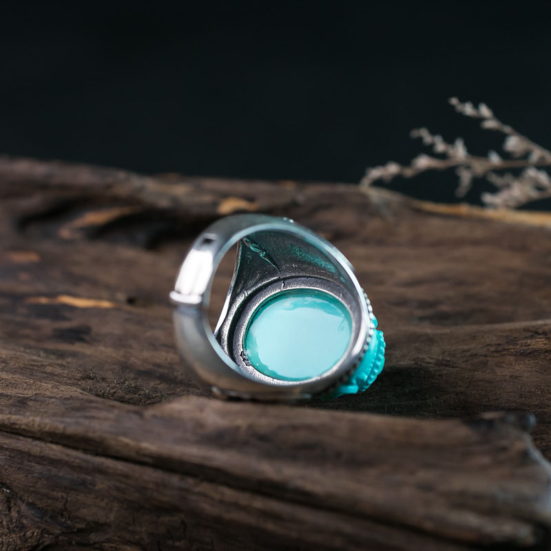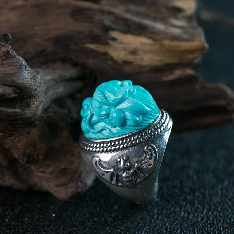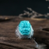 • [名  称] 银镶高瓷蓝绿松石龙头戒指