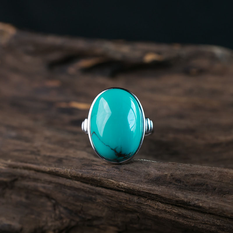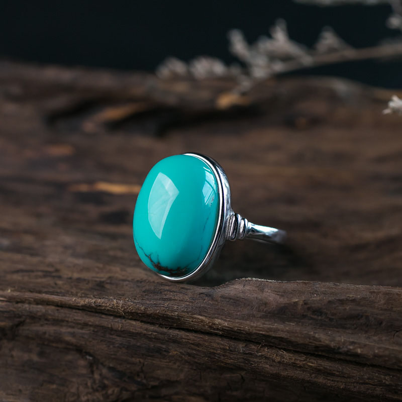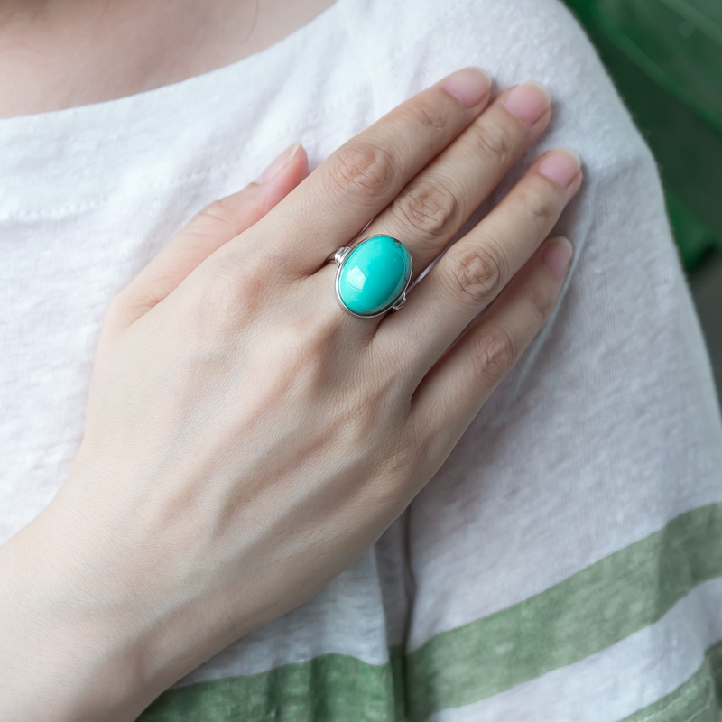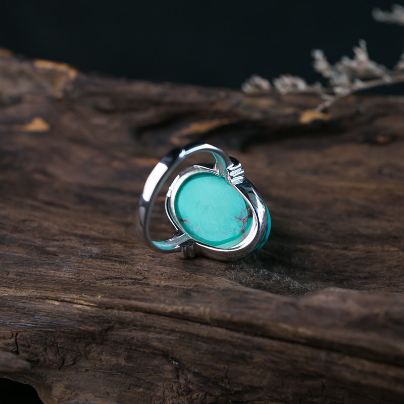 • [名  称] 银镶中高瓷铁线蓝绿松石戒指
