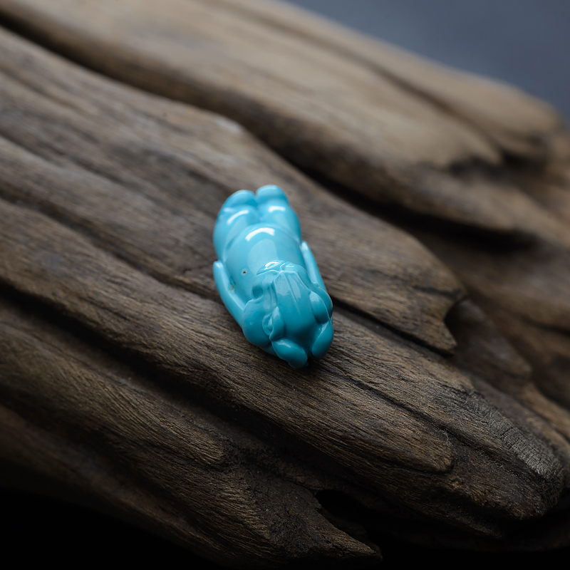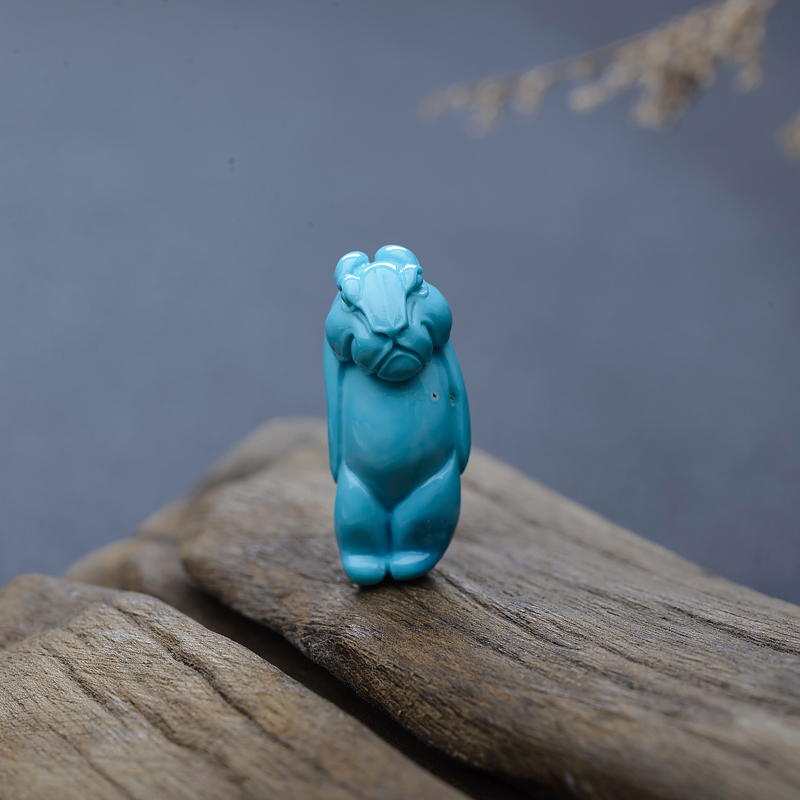 • 高瓷铁线蓝色绿松石兔子吊坠