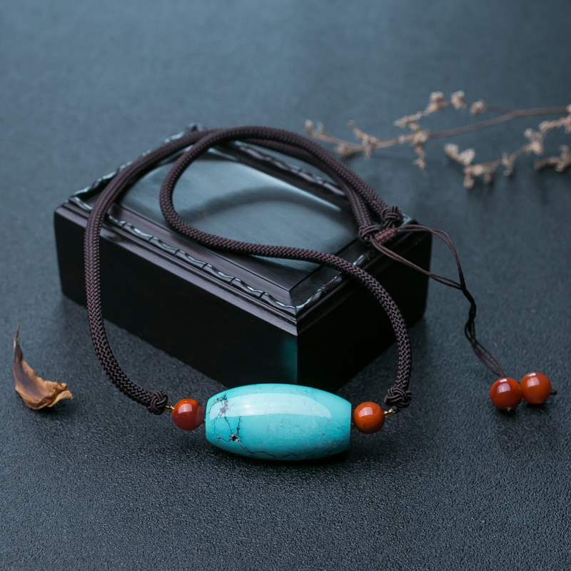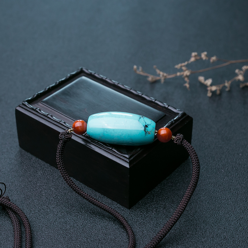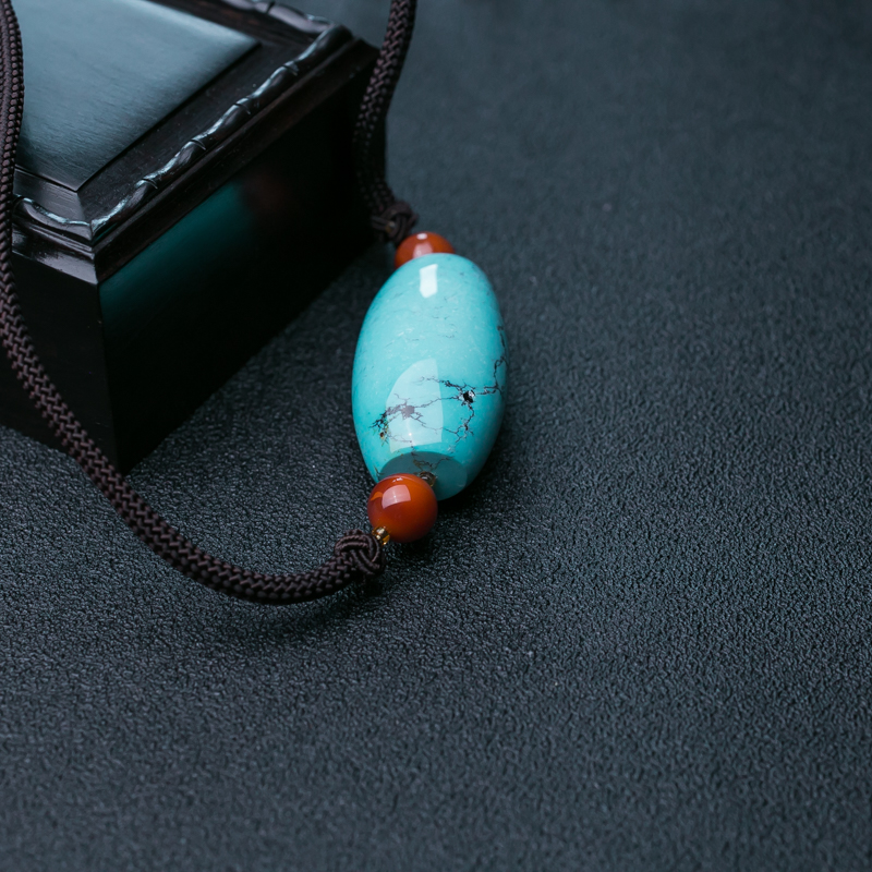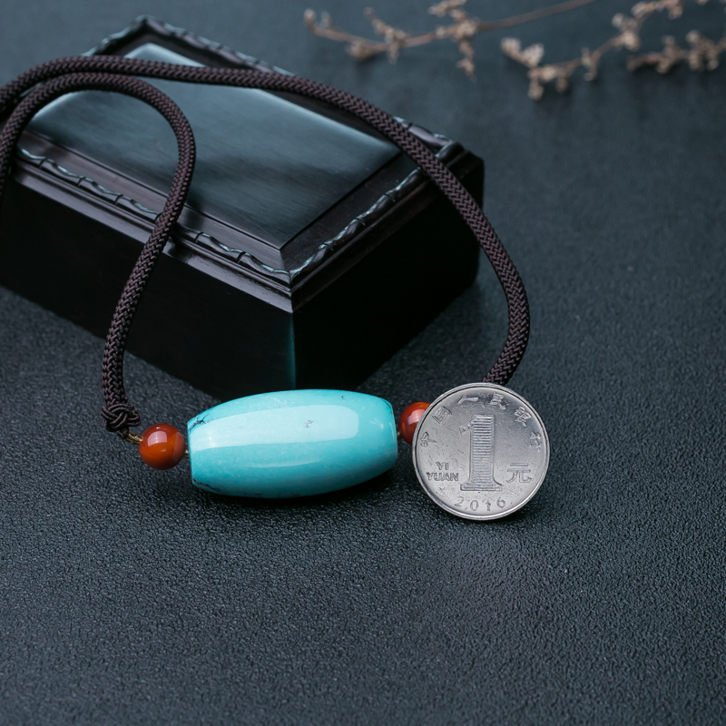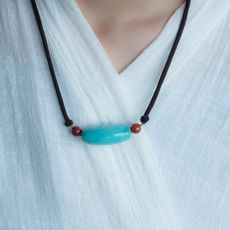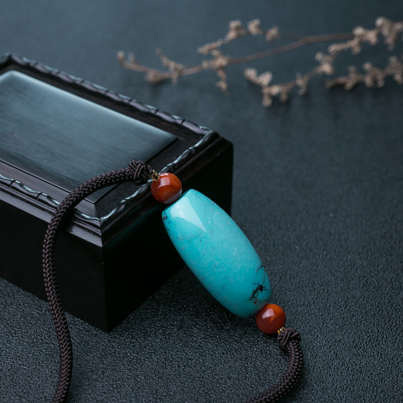 • 高瓷铁线蓝色绿松石吊坠