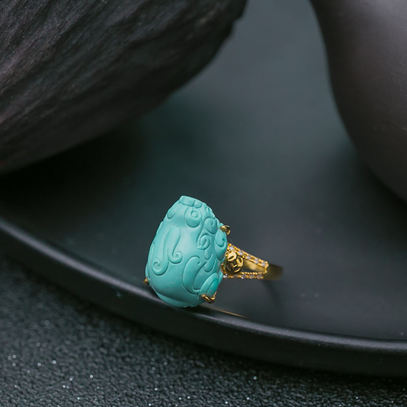 • 18K中高瓷浅蓝绿松石貔貅戒指