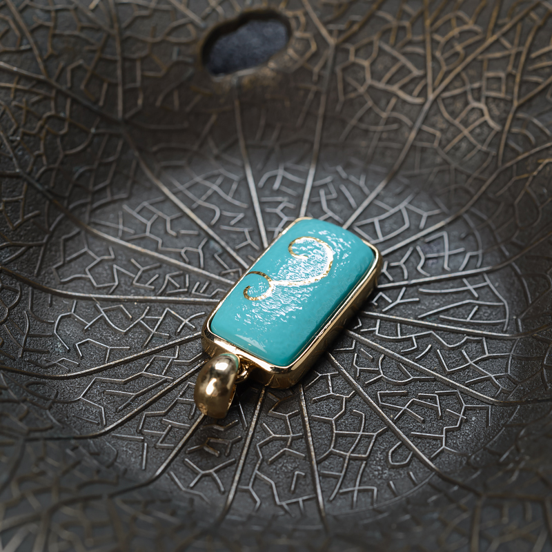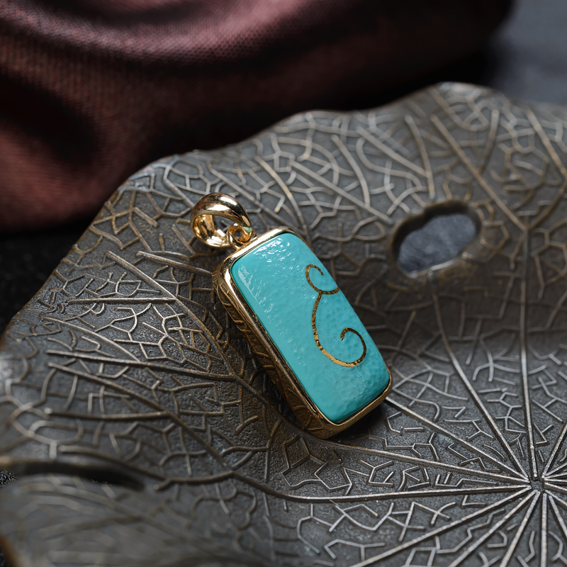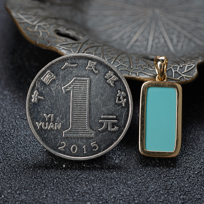 • 18K高瓷蓝绿绿松石方牌吊坠