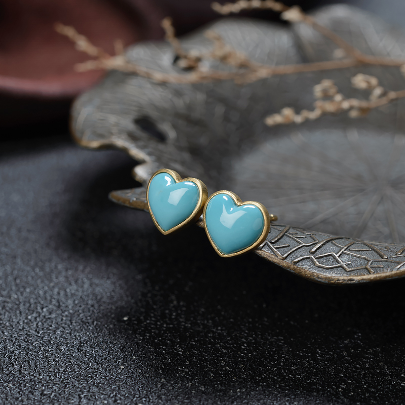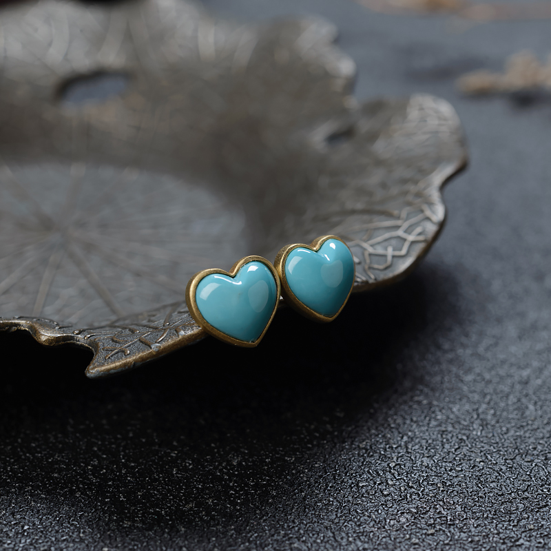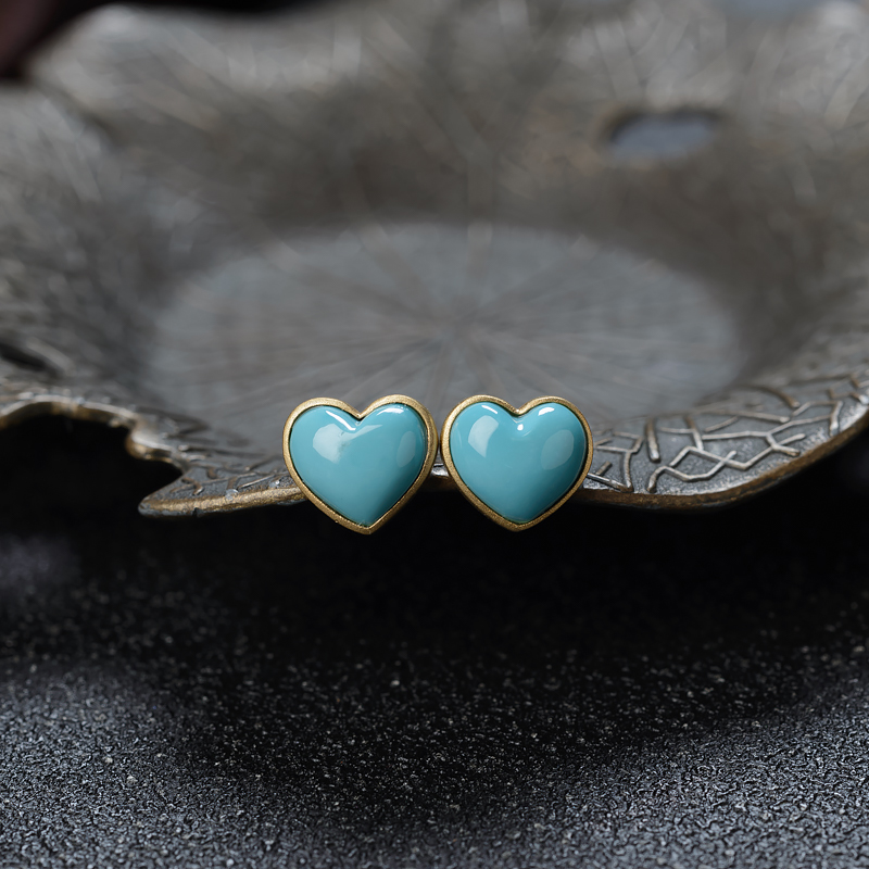 • [名  称] 18K高瓷蓝绿松石心形耳钉