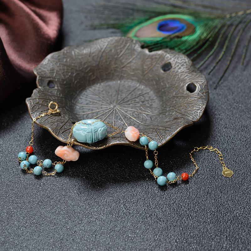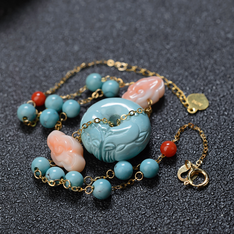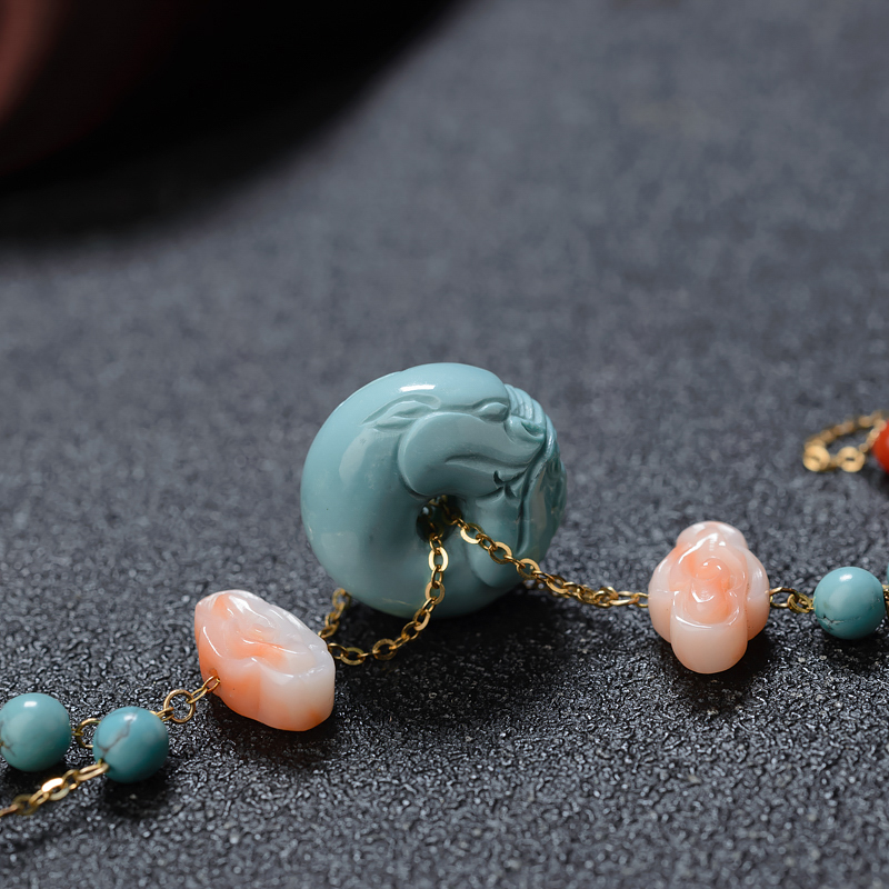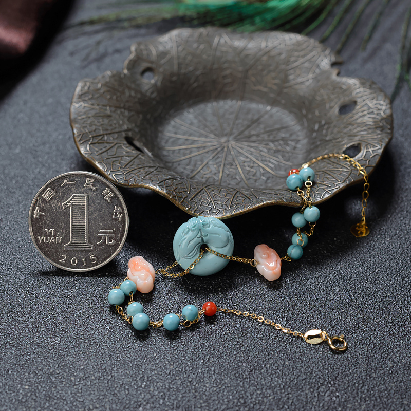 • [名  称] 18K高瓷浅蓝绿松石双龙扣手链