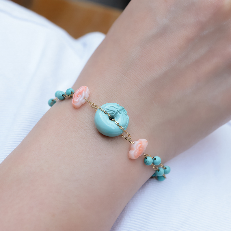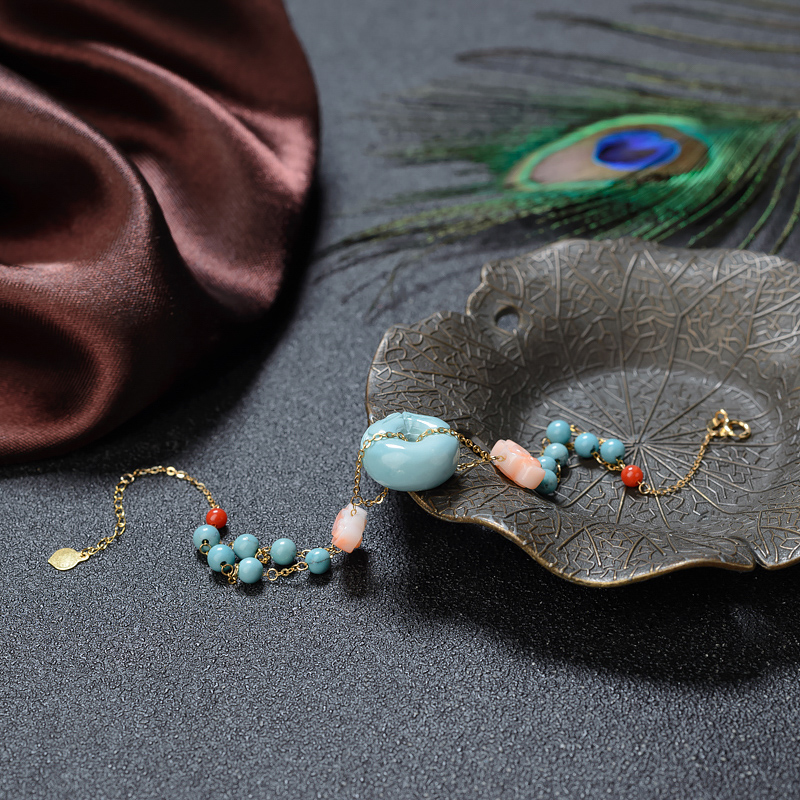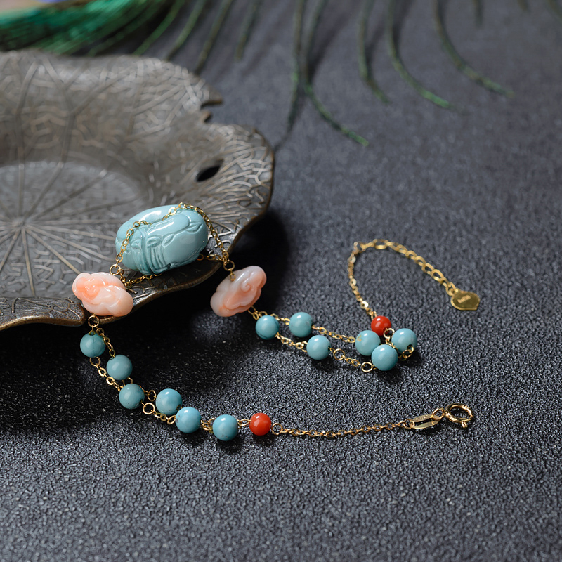 • 18K高瓷浅蓝绿松石双龙扣手链