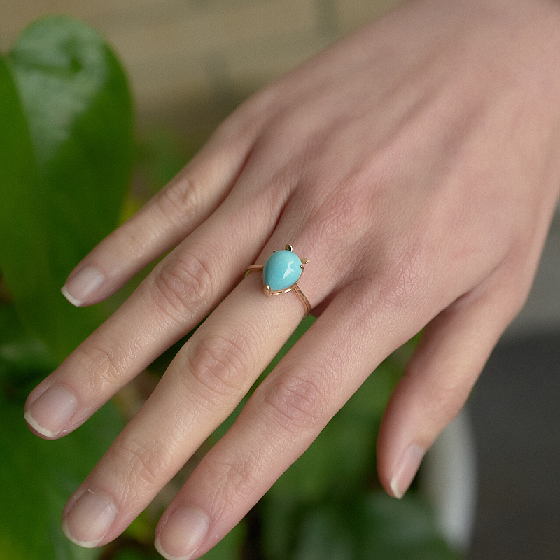 • 18K高瓷蓝绿绿松石胡萝卜戒指