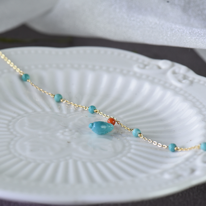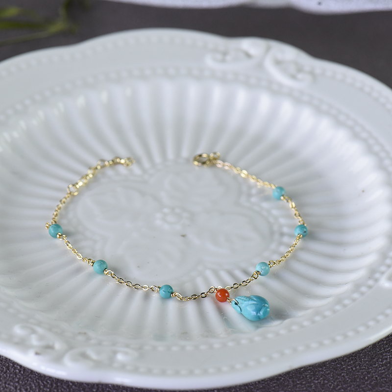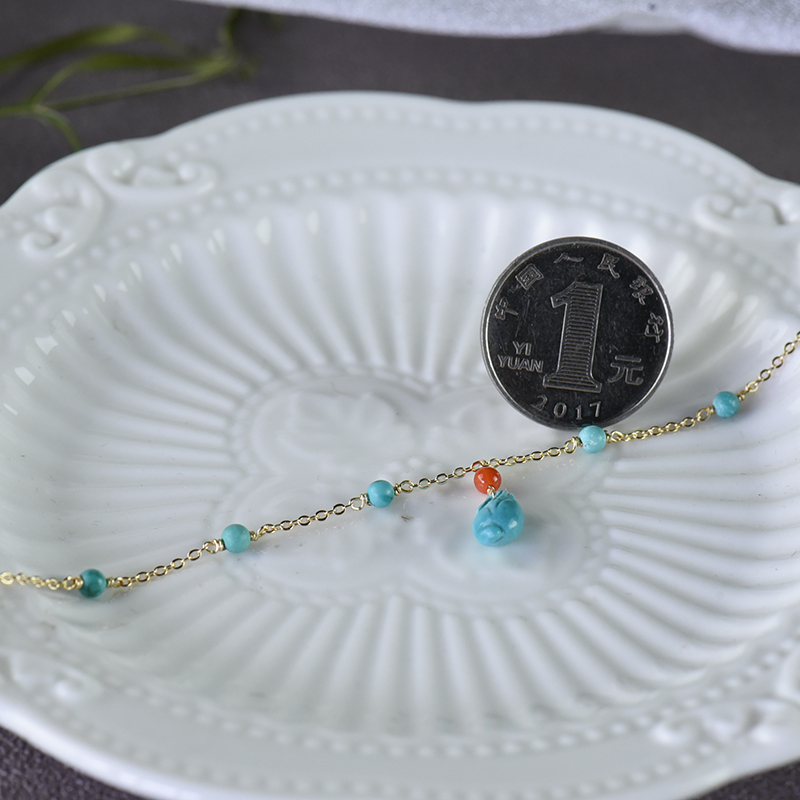 • [名  称] 14K中高瓷蓝色绿松石玉米手链
