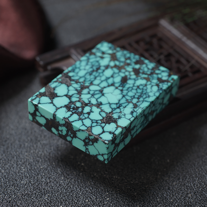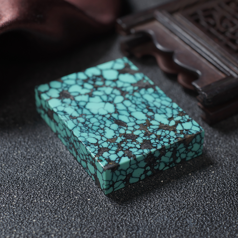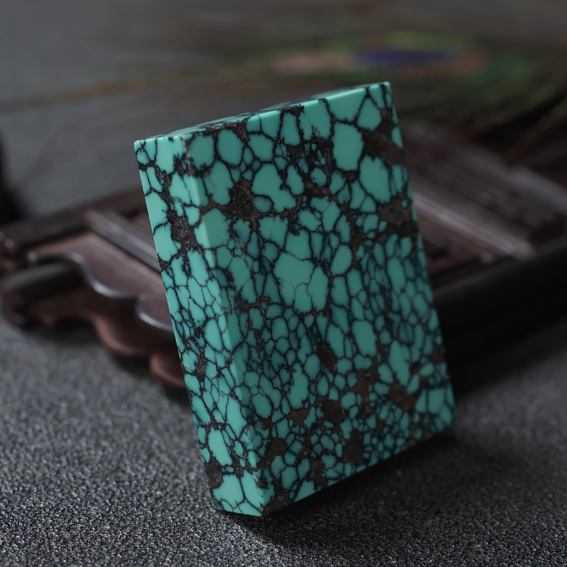 • 高瓷乌兰花蓝绿绿松石方牌吊坠