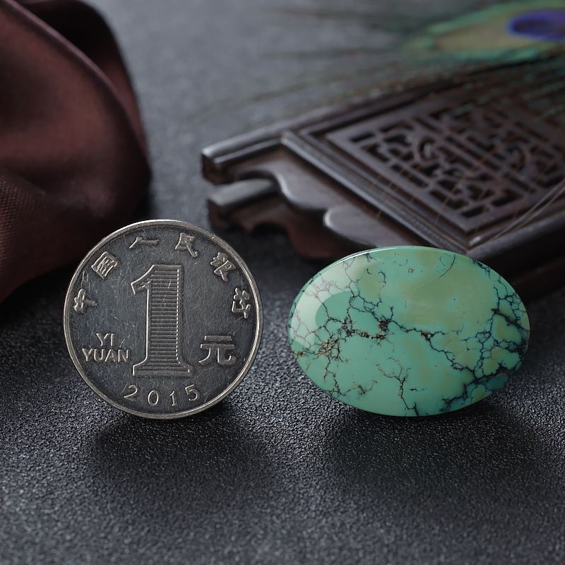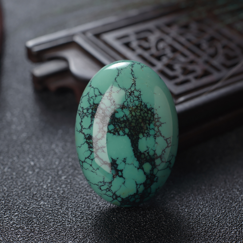 • [名  称] 高瓷铁线蓝绿绿松石蛋面形戒面