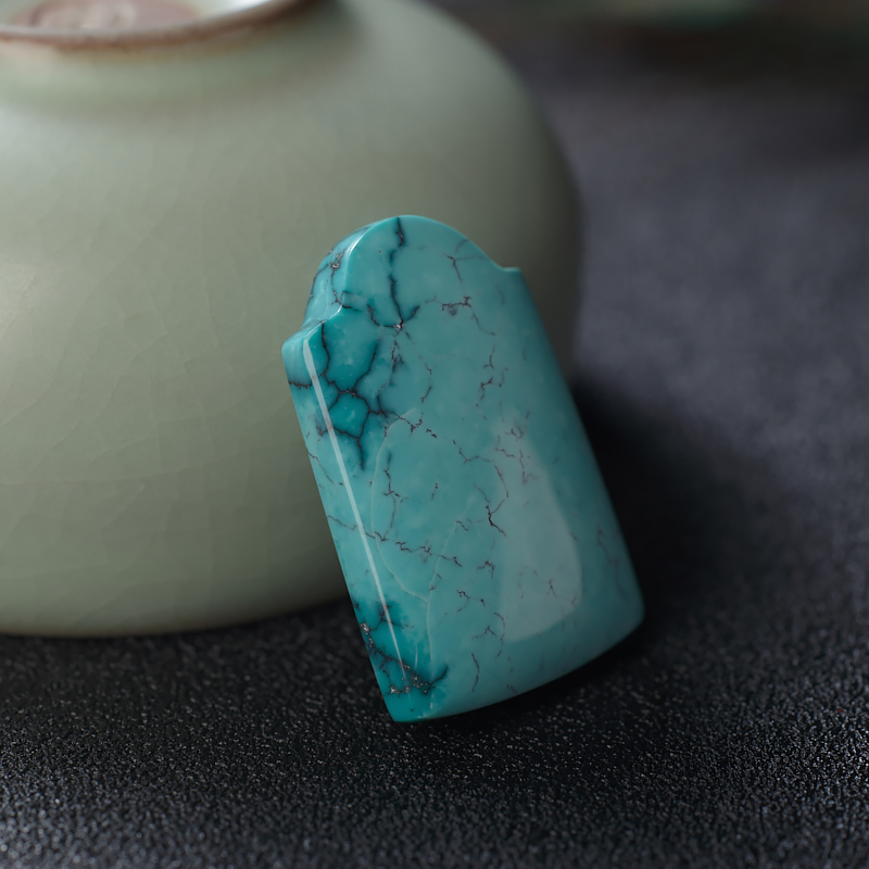 • 高瓷铁线蓝绿绿松石无事牌吊坠