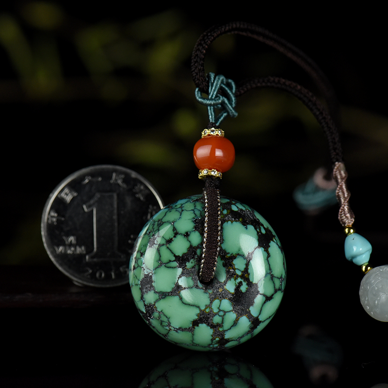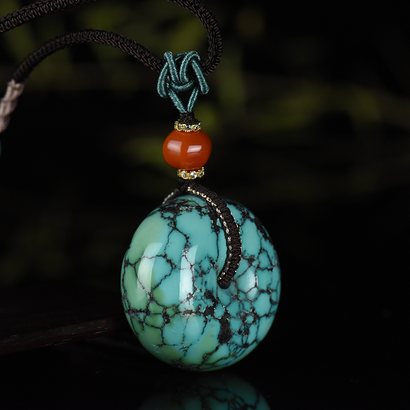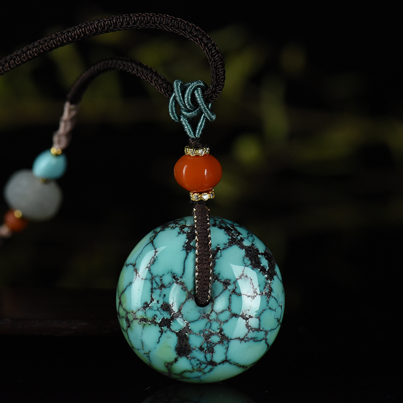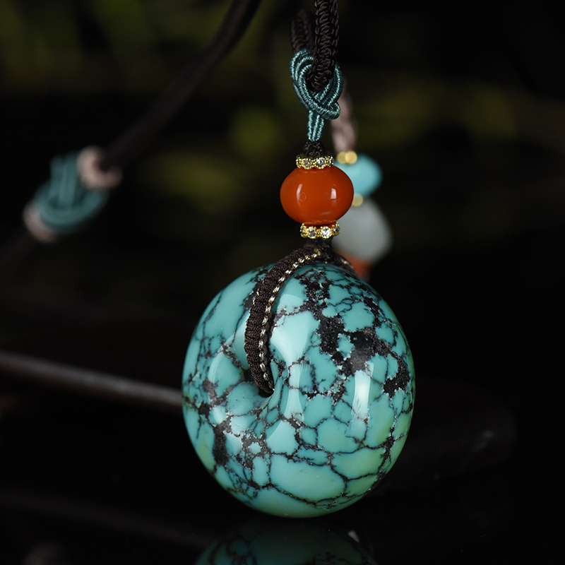 • 高瓷蓝绿色绿松石平安扣吊坠